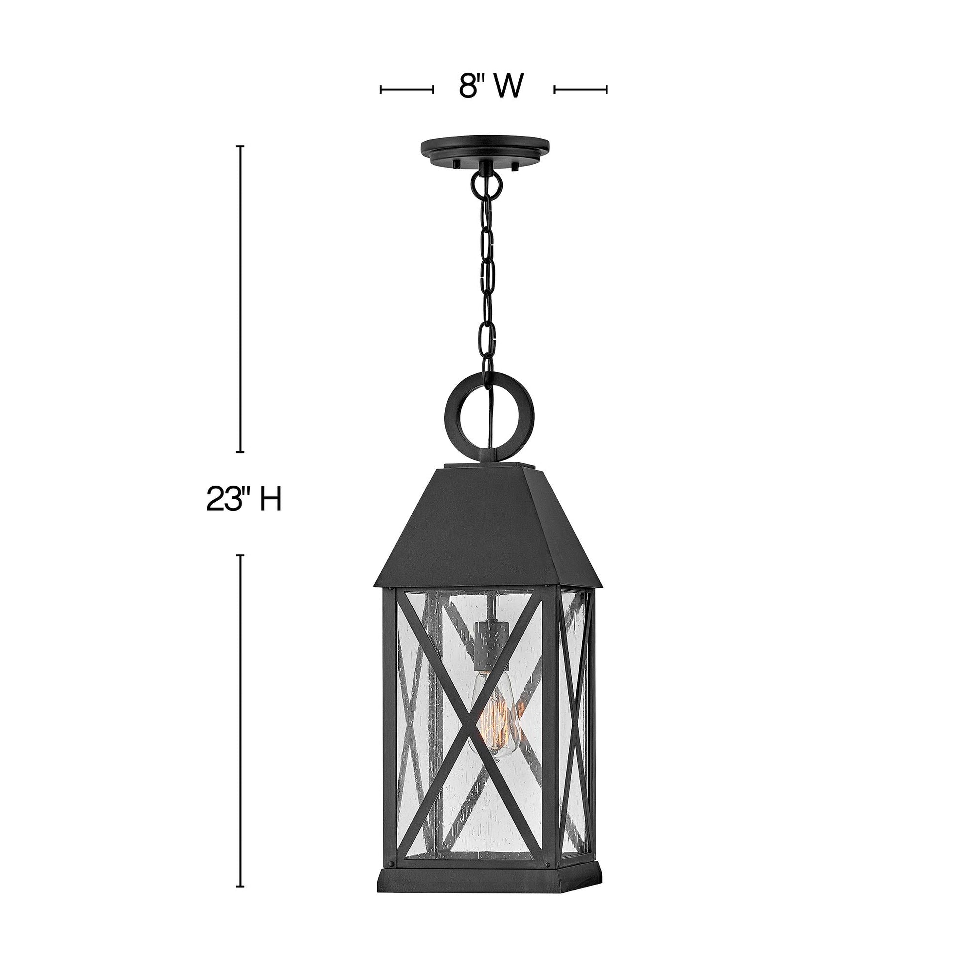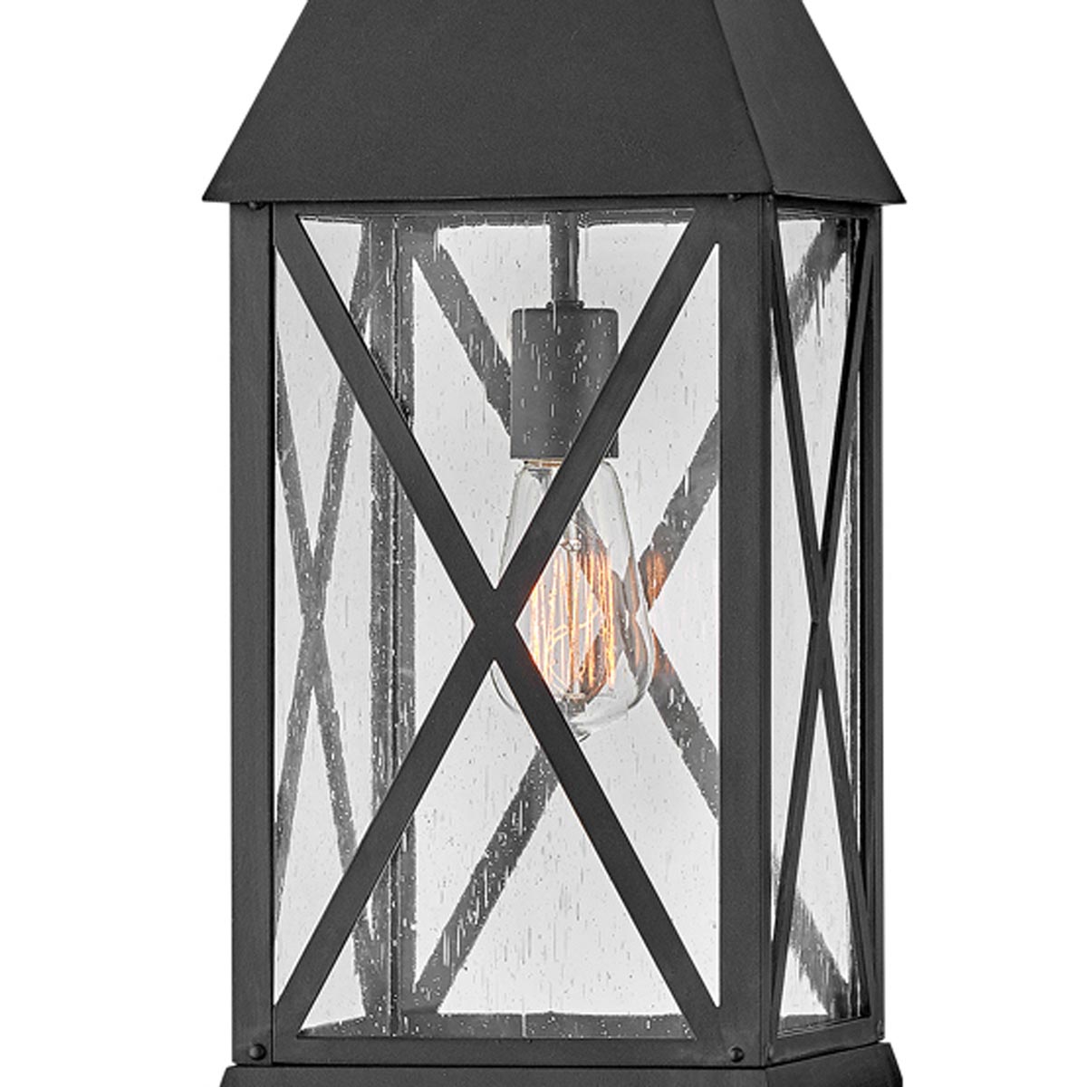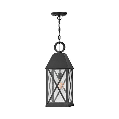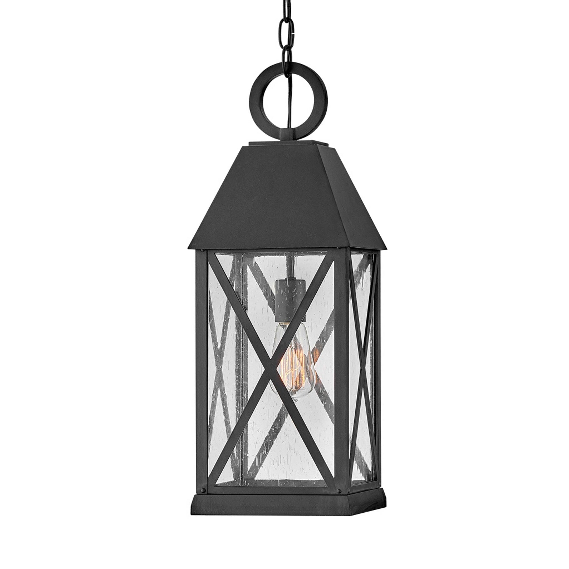 Bold design embellishments add verve and style to the Briar Outdoor Pendant Light from Hinkley, delivering a cottage-inspired vintage feel to porches and exterior structures. Deep museum black finish aluminum begins a tasteful motif with English village influence, clear seedy glass panels, and unmistakably outspoken cross bars adding to a statement-making look.