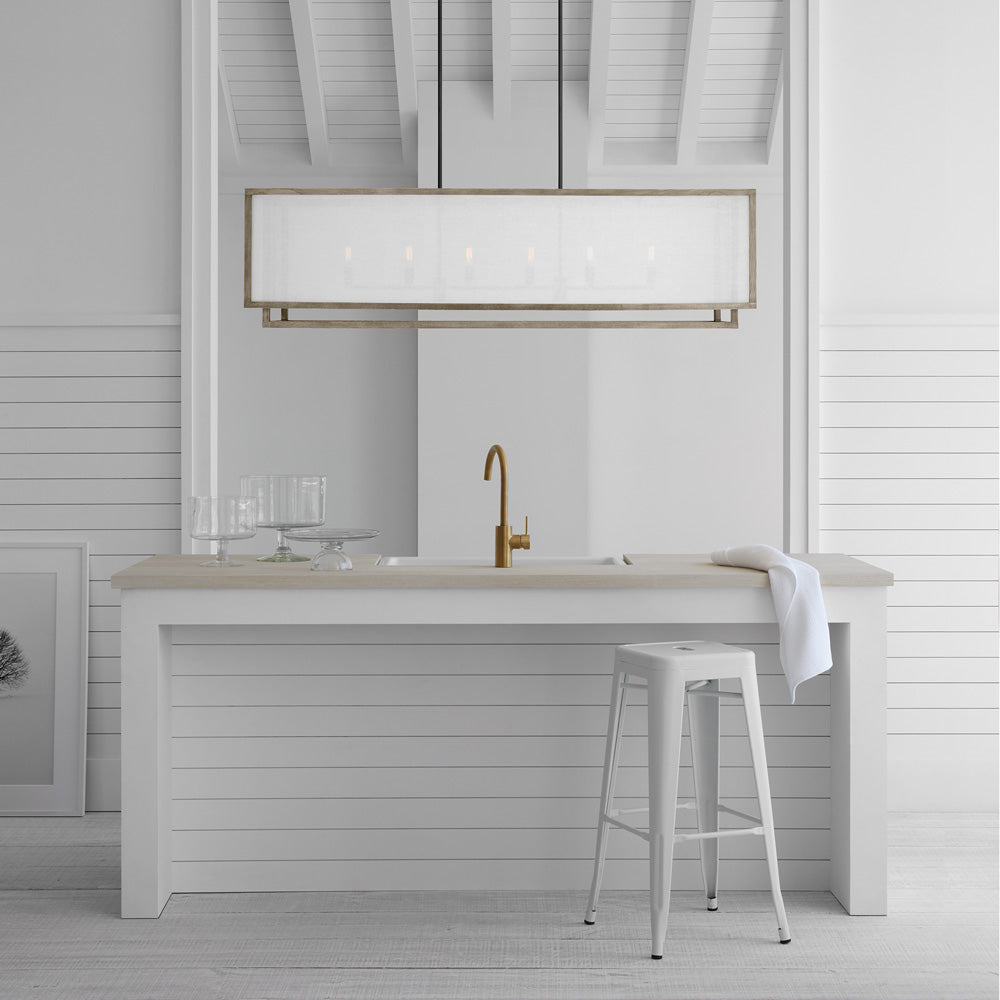 Clean lines and weathered oak wood creates an updated farmhouse ambiance for the Brockway Linear Pendant Light from Visual Comfort Studio. Glowing illumination sets the tone in your kitchen or dining room, offering warm, inviting flair that welcomes friends and family to make themselves at home.