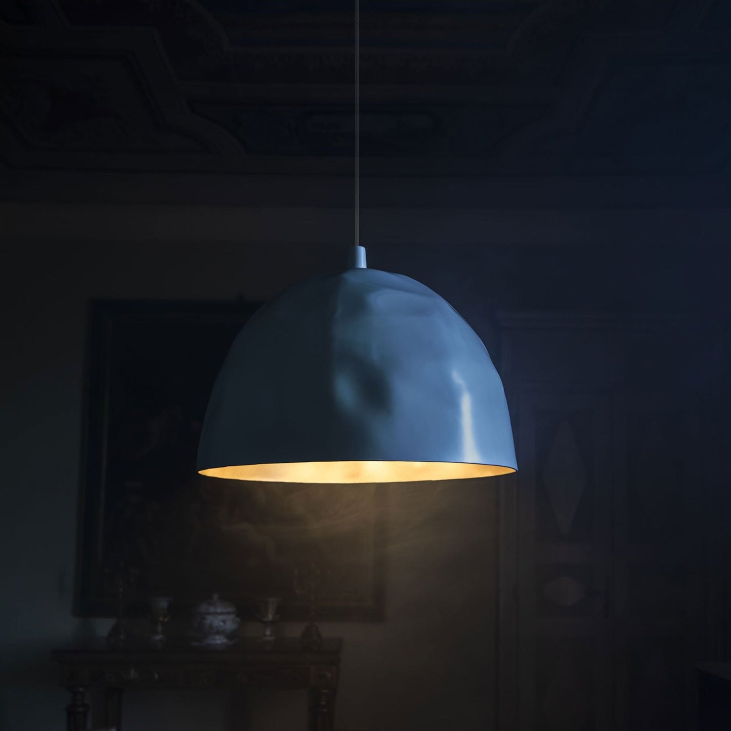 The imperfect silhouette of the Bump LED Pendant Light from Foscarini offers character to streamlined spaces. The textured glass mimics dancing sunlight inside your living space for all to admire.