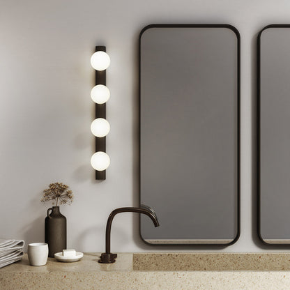 It's all about performance as the festive Cabaret Bath Wall Light from Astro Lighting emulates backstage lighting from iconic theatrical venues. Minimalism is on point with a fixture featuring simple metal framing and delicate glass globes making a case for any space. Position this light in a horizontal or vertical orientation to customize a bath design.