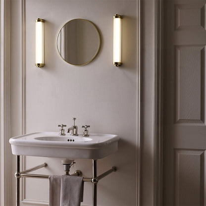 Repurpose a romantic 1930s look with a light fixture blending a dose of glam with a sleek silhouette. The Cabin LED Bath Wall Light from Original BTC delivers an alluring frosted glass semi-cylinder shade capped at both ends with sculptural metal elements. Artisan vibes sneak in to embellish the retro aesthetic with sheer romance.