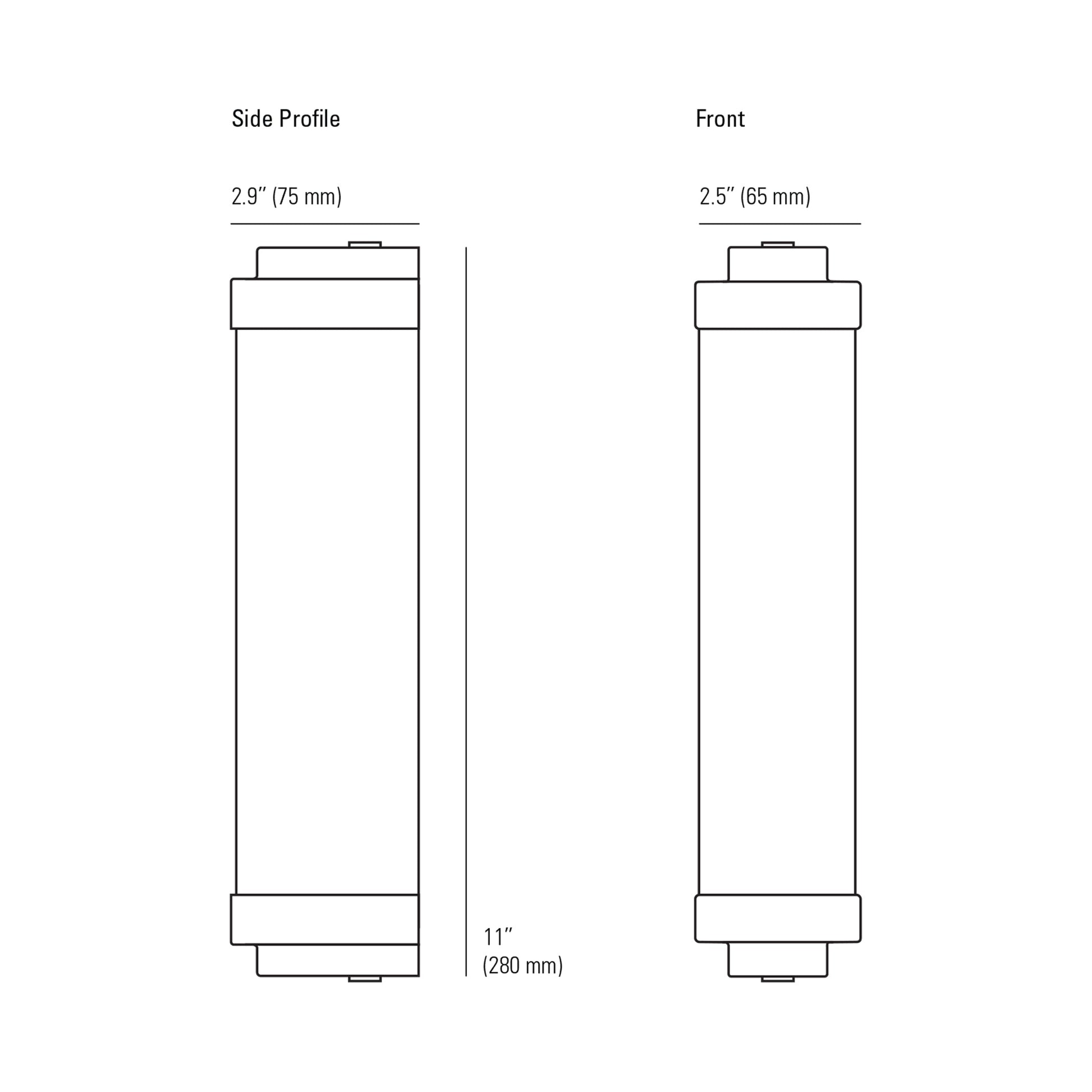 - Small: 2.5"W X 11"H; 2.9" Extension