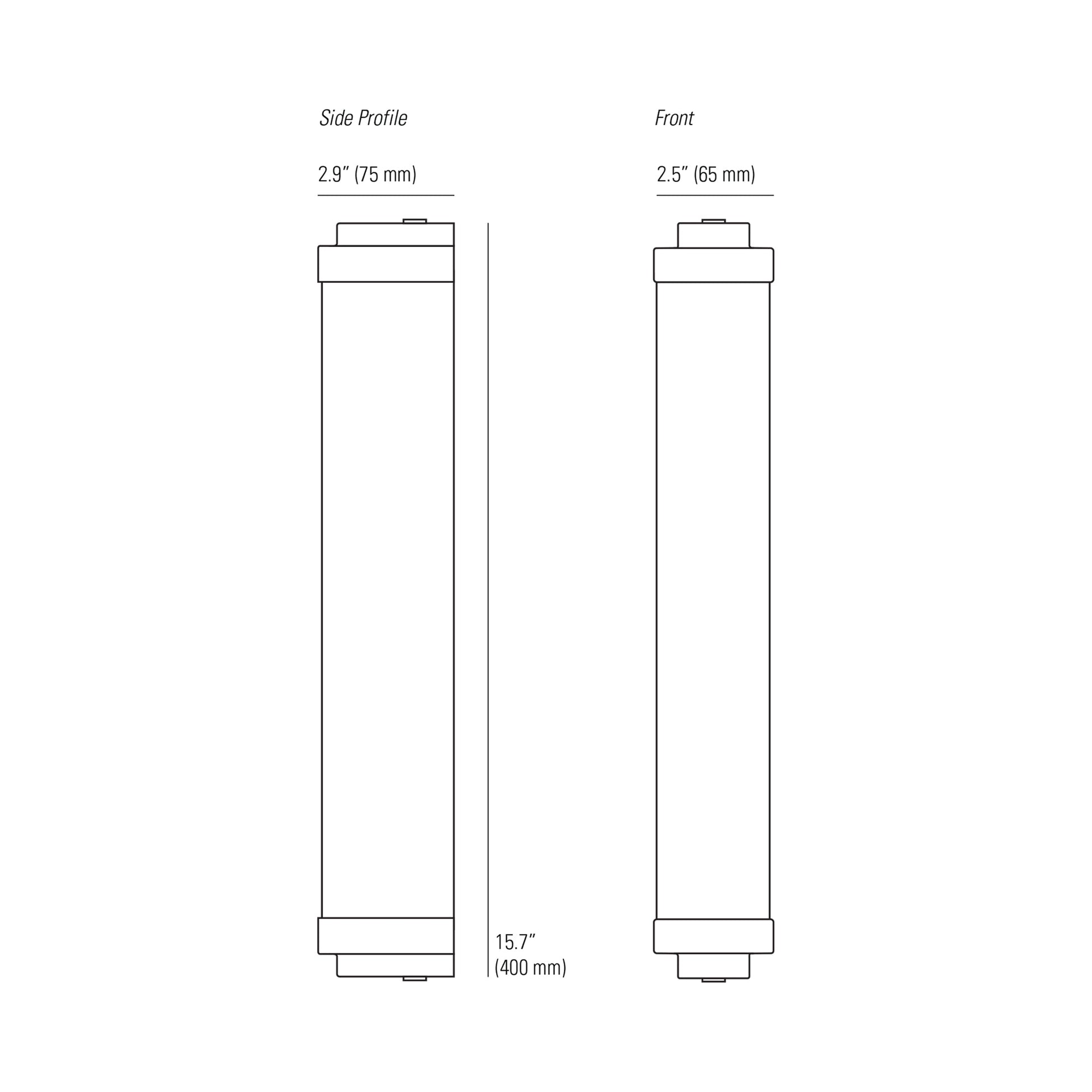 - Medium: 2.5"W X 15.7"H; 2.9" Extension