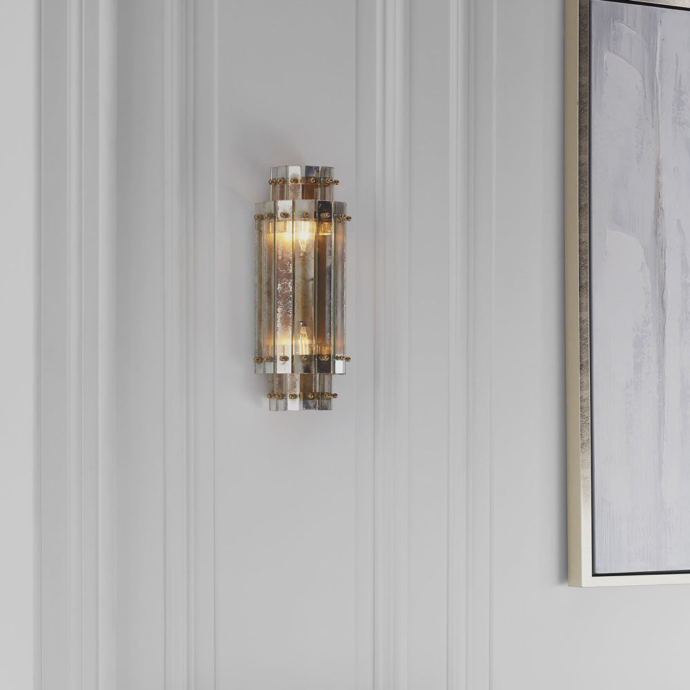 Create a vintage-inspired Hollywood Regency feel with this contemporary Cadence Wall Light from Visual Comfort Signature. Designed with a tiered silhouette covered in an antique mirror plating, this retro-inspired wall light gives off an old-word charm, accented by rivet details and slim timeworn elements.