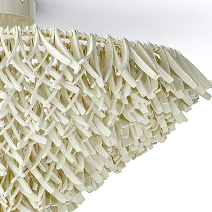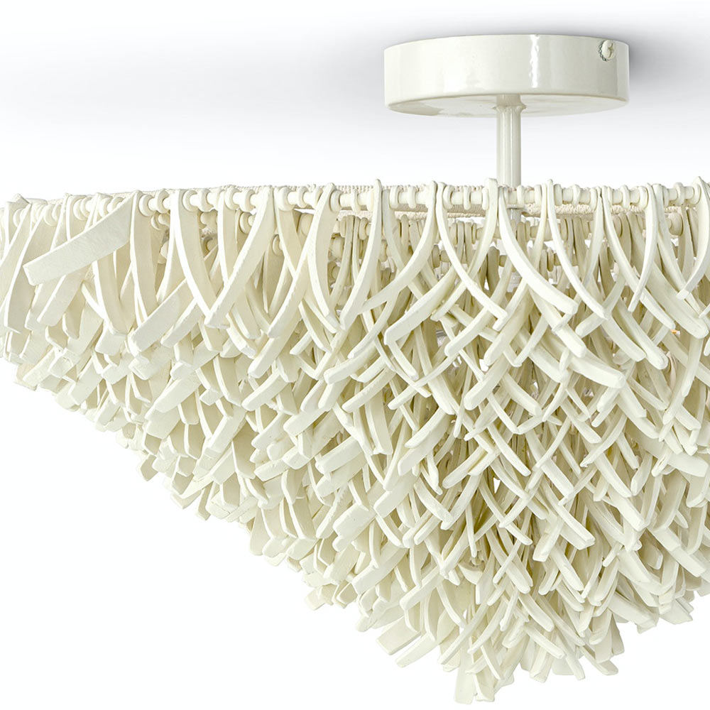 The Cadiz Semi Flush Mount Ceiling Light from Palecek sets itself apart with a purposeful silhouette created by hand-carved coco shells offering a heady cream finish. Blending texture with vintage Art Deco style, this fixture is highlighted with finely woven abaca rope details and mounted to a metal frame. Experience the delicacy of gallery style with the casual earthy vibe of coastal elegance in a single light fixture well-placed in a kitchen, foyer, or bedroom.