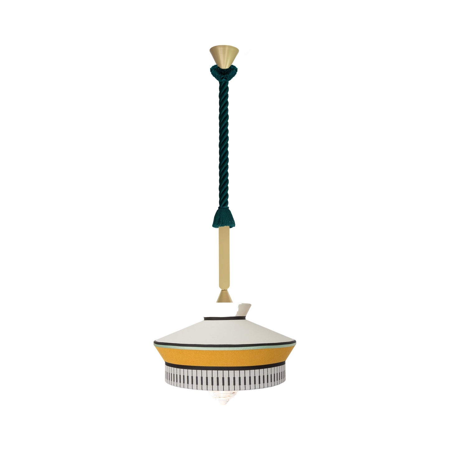 Texture and color highlight the charming Calypso Martinique Outdoor Pendant Light from Contardi. Lending artistry over a front entry or on a covered patio, the pendant features a textile suspension paired with a colorful decorative shade that adds richness and depth to your exterior decor.