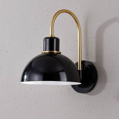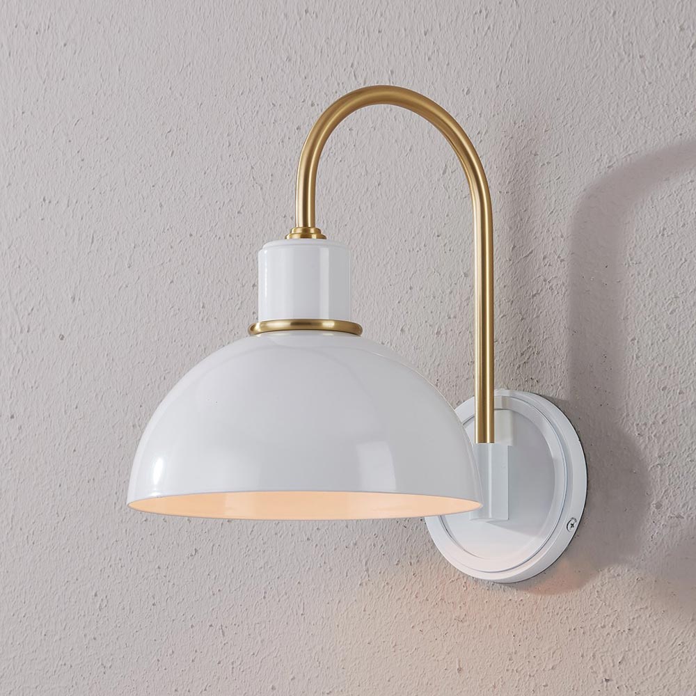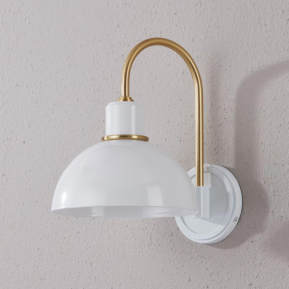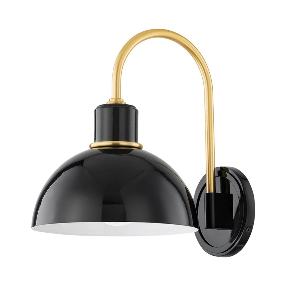 Capture a bit of iconic heritage with a retro twist in lighting. The Camille Wall Light from Mitzi offers a captive, enchanting addition to interior décor that follows a bit of Art Deco style. Balanced from a gleaming aged brass gooseneck arm is a studio-inspired dome shade matching a wall plate and creating a bold vibe ideal for highlighting refreshed modern settings.