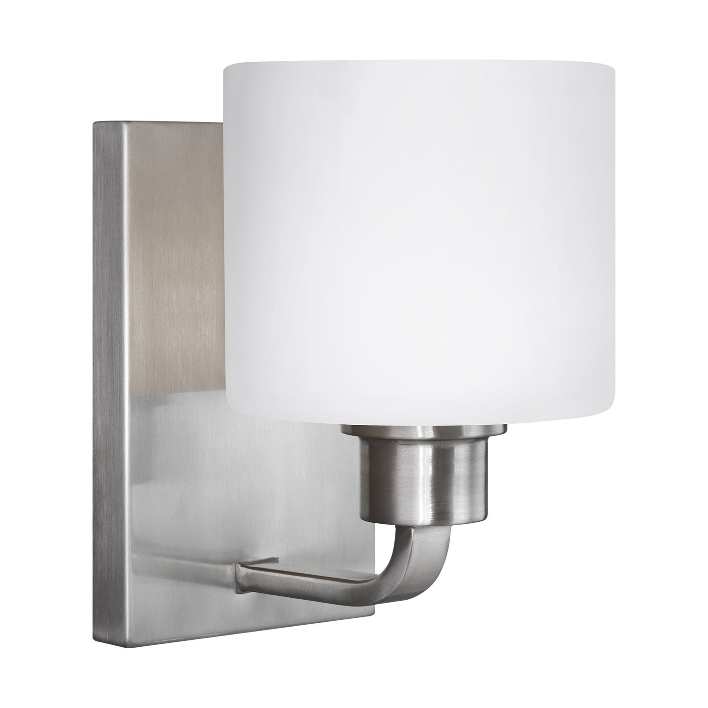 Enrich a sophisticated modern setting with the stunning look of the Canfield Bath Wall Light from Generation Lighting, adding design simplicity with a minimalist motif and glam feel. Basic geometric elements converge to offer an eye-pleasing vibe that embellishes surrounding elements without overpowering. A charming round shade and square metal backplate tell the story of low-profile elegance.