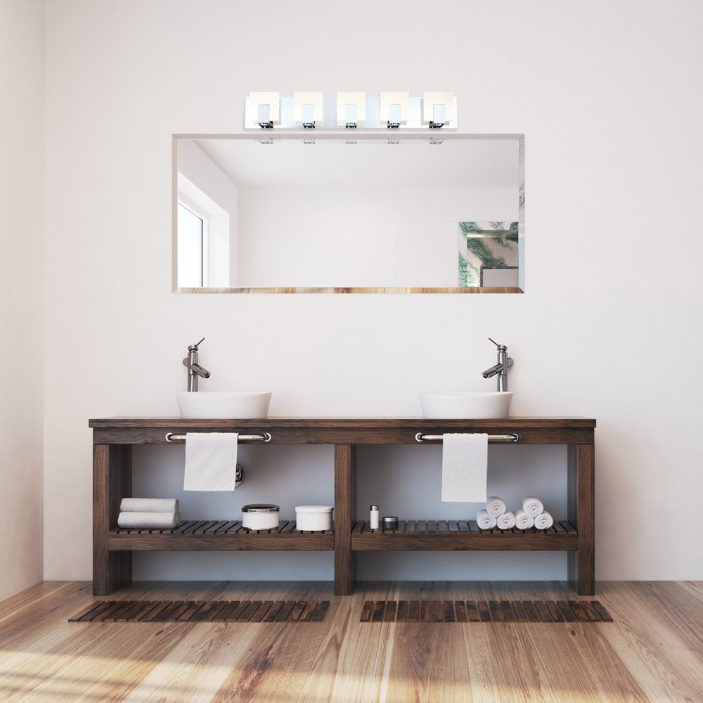 - 5-Light: 5 X 8W 120V integrated LED modules; 2200 lumens, 90 CRI, 3000K (included)