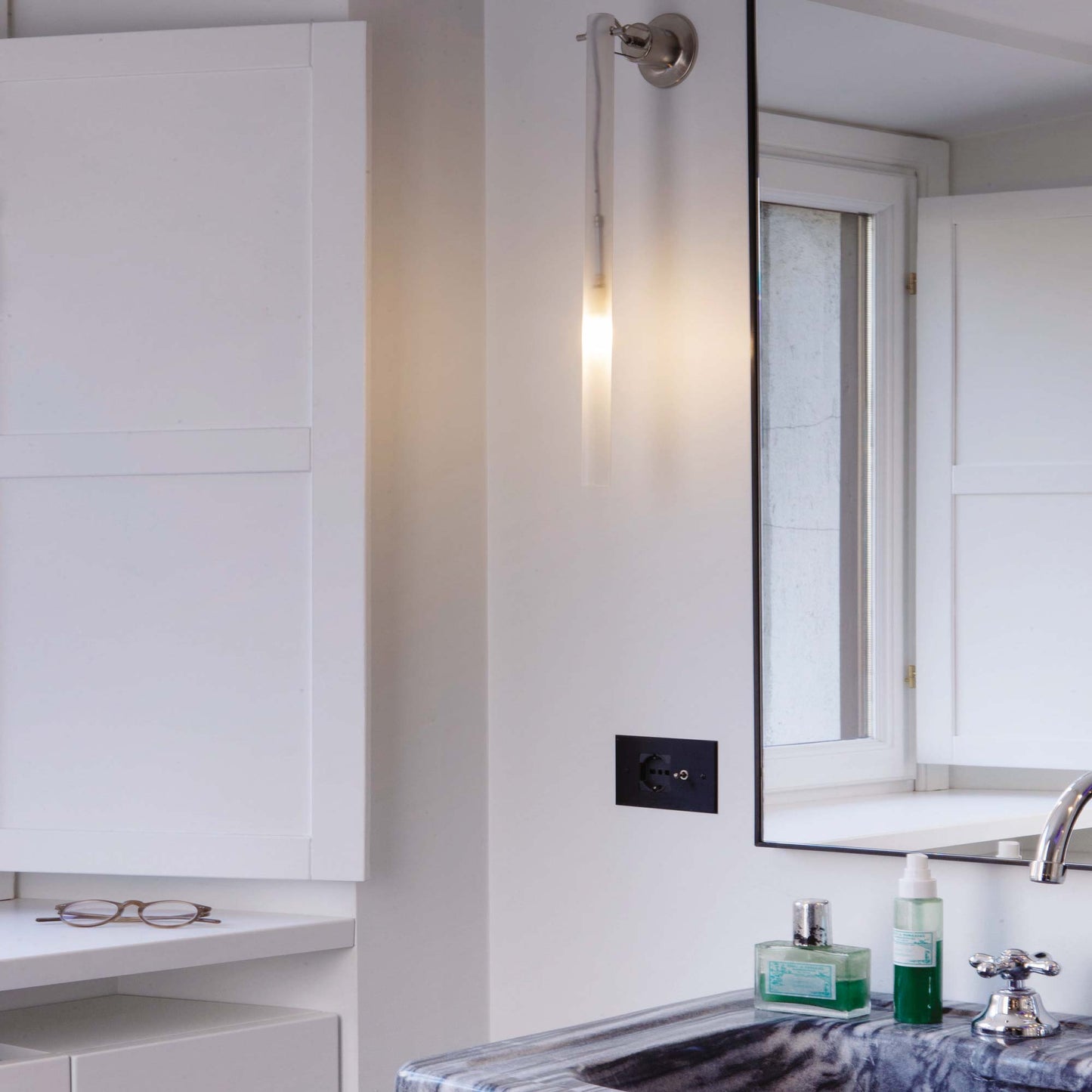 The Canna Nuda Ceiling / Wall Light from NEMO defies gravity in a stunning display of floating symmetry and careful minimalism. Mounted as a solo fixture with vertical slicing or as a conglomerate of well-placed ambient lighting, its artful version of industrial inspiration directs sleek baton-like figures that send soft light radiating around a modern space.
