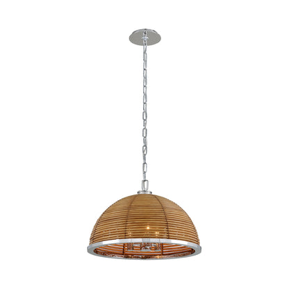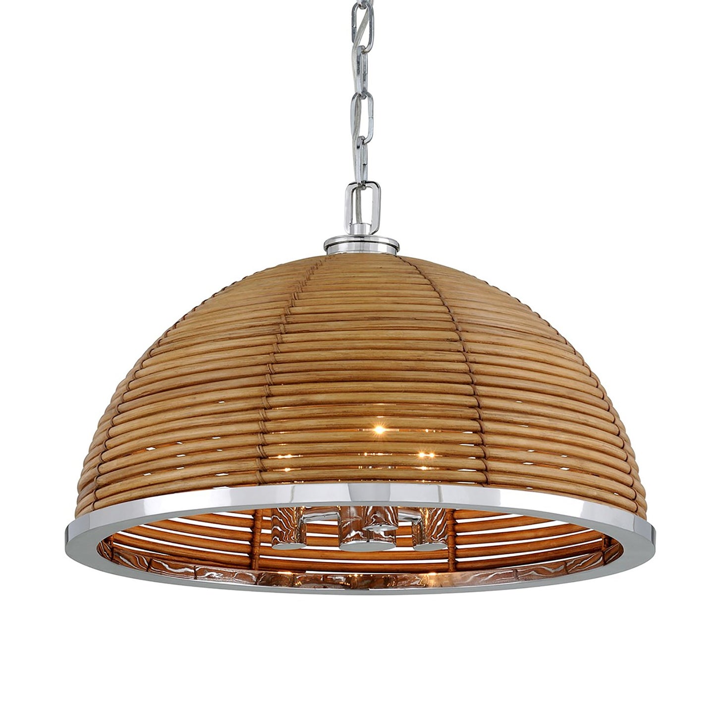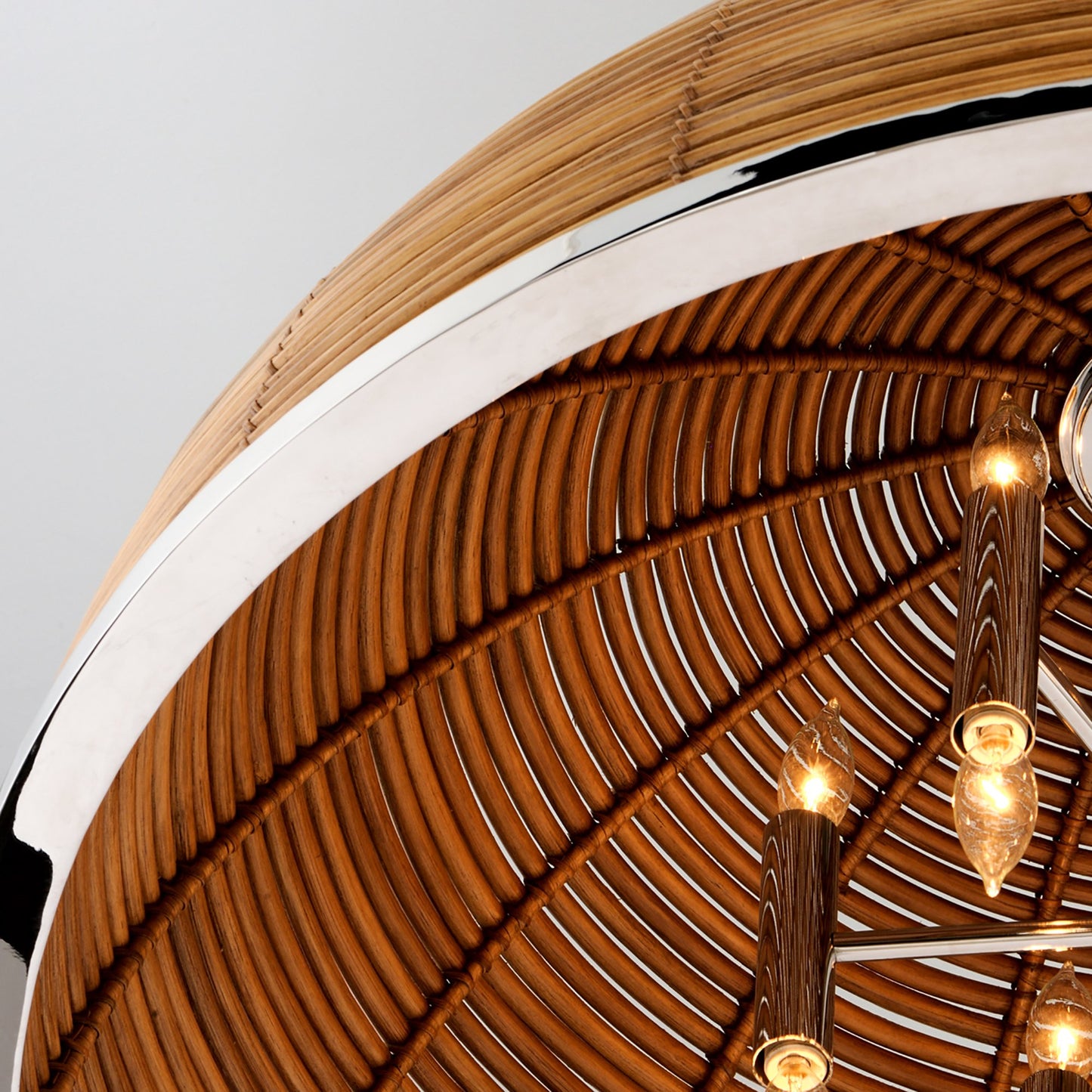 Cop an island attitude in any casual space with the Carayes Chandelier from Corbett Lighting, soaking up its natural ambiance blending textured, sustainable natural rattan bands with an edge band and accents made of stainless finish stainless steel.
