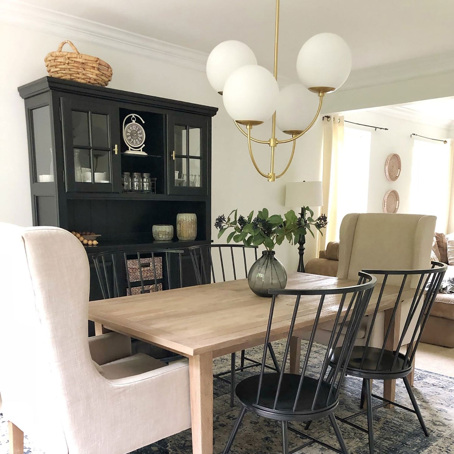 For a modern aesthetic that's decidedly different, Carrie Chandelier from Mitzi is a step above the rest. Graceful curves fuse with dramatic globe diffusers for a glowing display of elegant illumination ideal for dining decor.