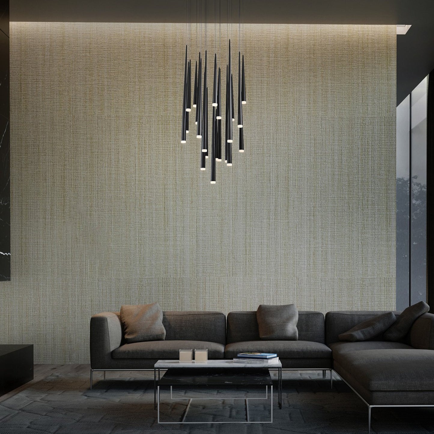 Slender icicles of light are capped with etched glass on the impeccably sophisticated Cascade Etched Glass Multi Light Pendant Light from Modern Forms.