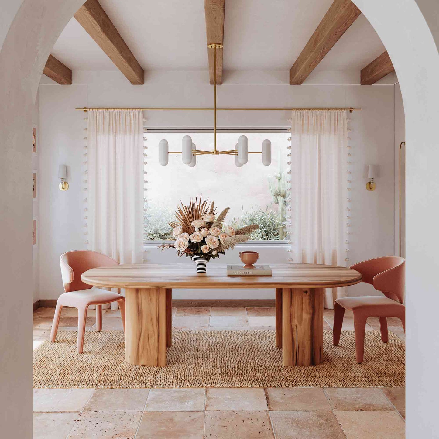 Playful yet sophisticated, Casey has a free spirit that would feel just as home at Coachella as an intimate gallery show. While her silhouette is classically inspired, geometric wood baubles add a clever twist. Stacked to perfection, the modern totem shapes feature a natural ash finish that tones down the antique brass arm and backplate. To top it off, a Belgian linen shade adds polish, its tapered form balancing the boho design.