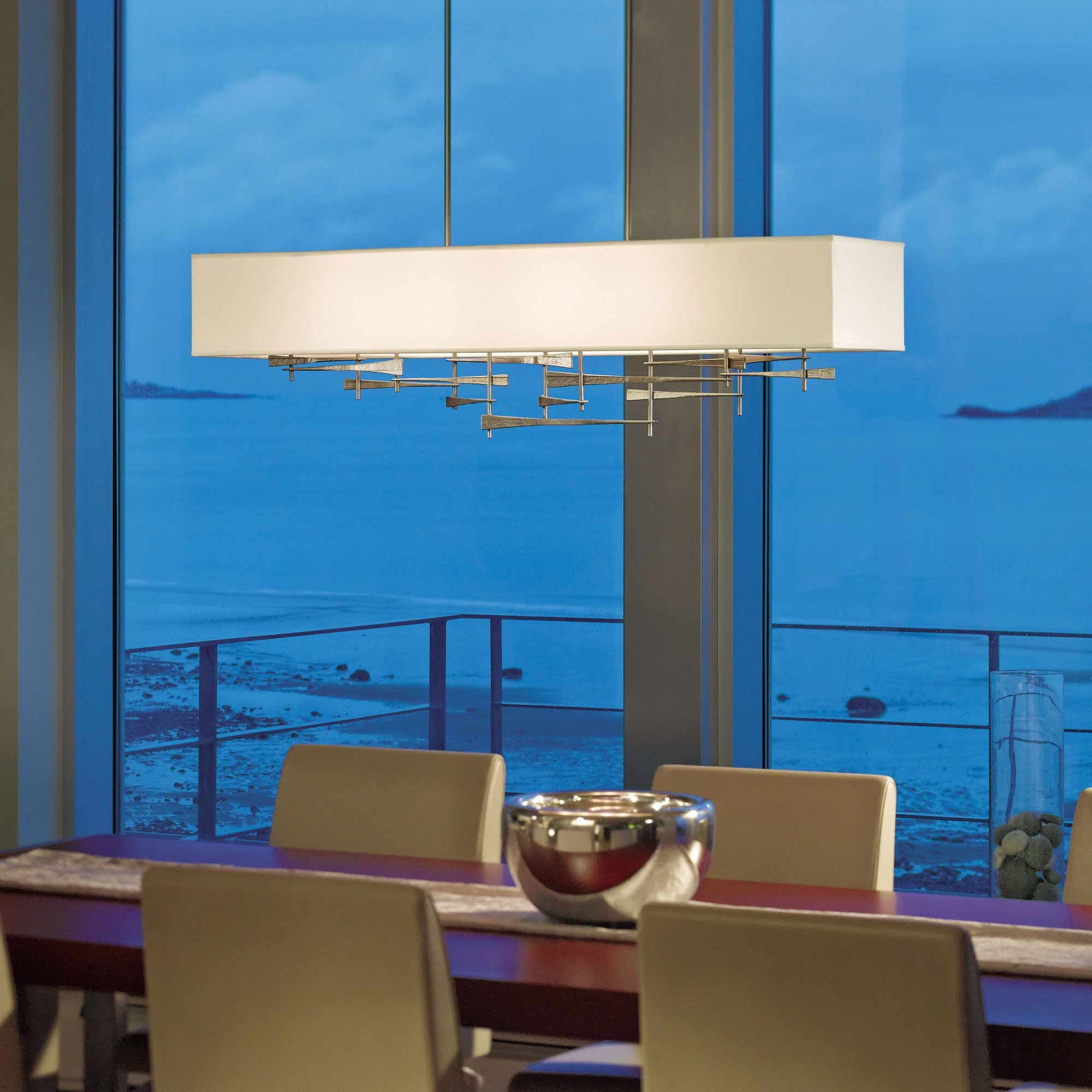 Inspired from the jumping bars of equestrian competition, the Cavaletti Pendant Light from Hubbardton Forge pairs earthy character with elegant ambiance.