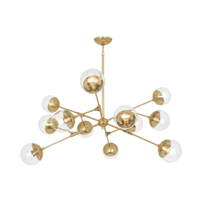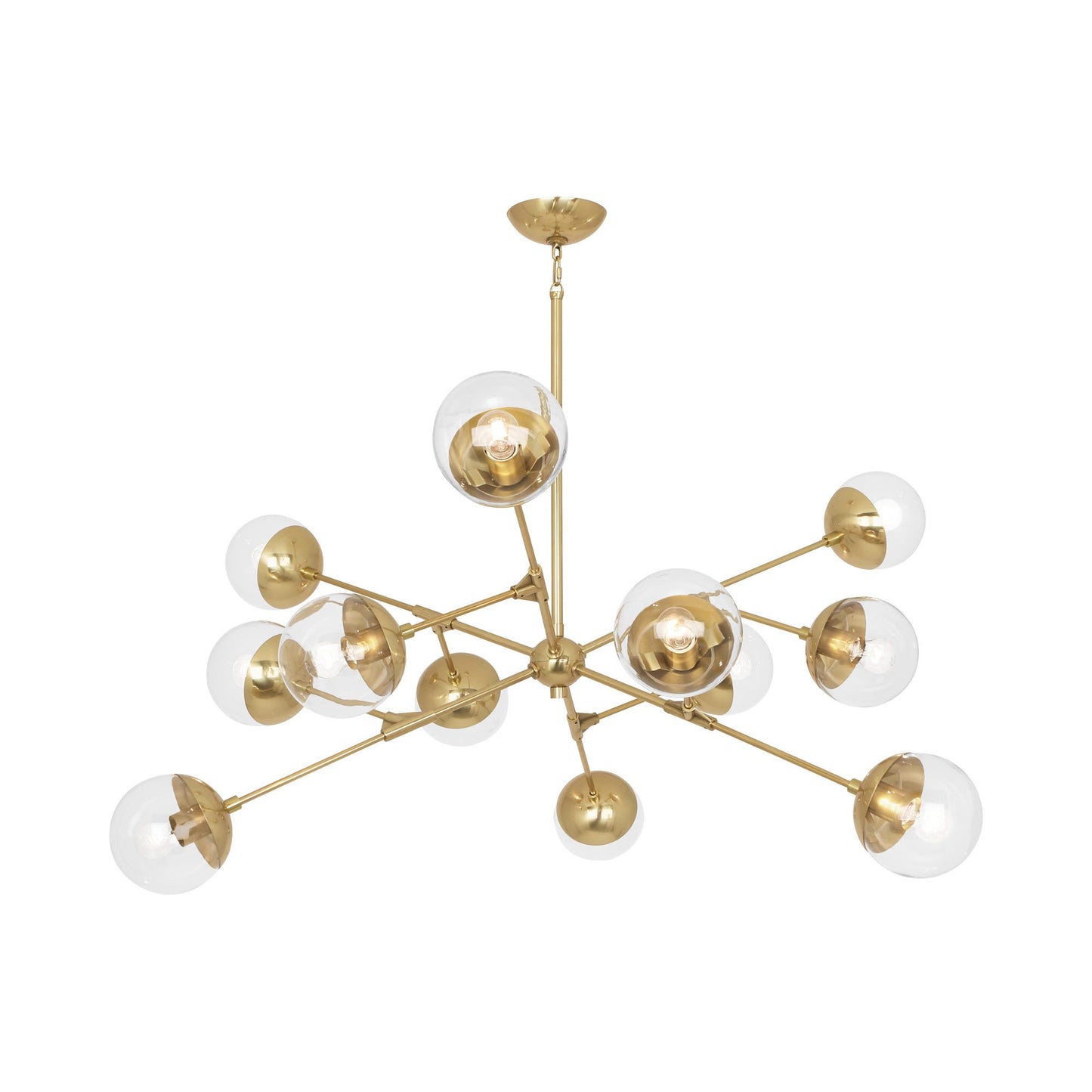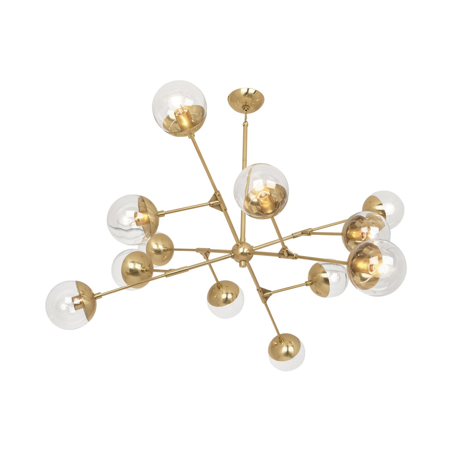 Creating futuristic energy mixed with glam, the Celeste Chandelier from Robert Abbey captures attention with a Sputnik-like silhouette branching metal arms capped with clear glass globe shades.