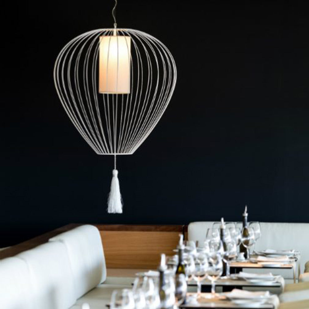 Asian influences shine through in the Cell Pendant Light from Karman, featuring a lantern-shape cage encompassing a glowing pillar shade. Suspended from above, this stunning lighting piece offers a lovely glow and charming tassel accent.