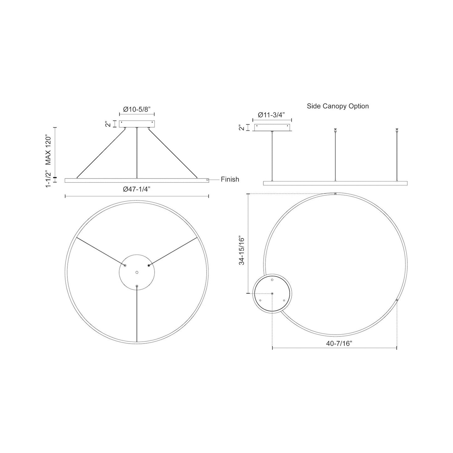 - Fixture Dimensions: 47.25"D X 1.38"H