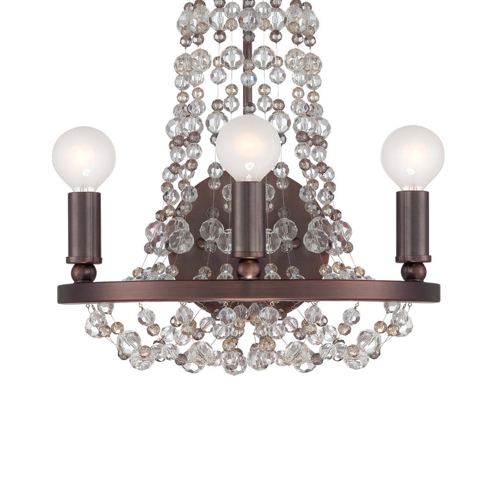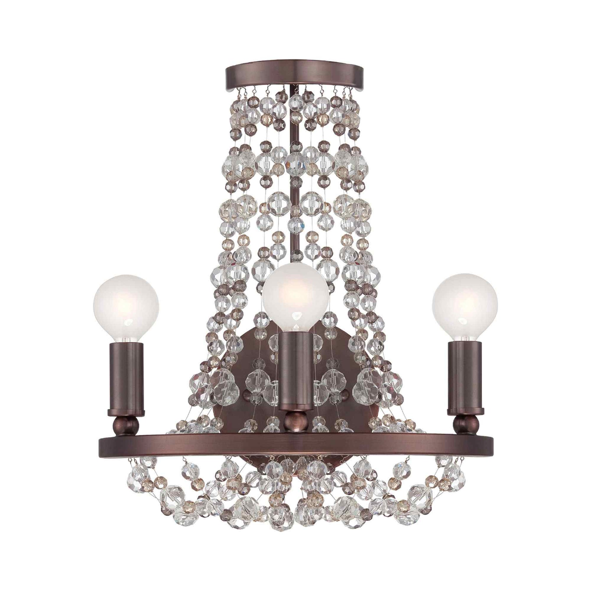 Inspired by iconic bohemian flavor, the Channing Wall Light from Crystorama brings genuine artistry to life in a transitional or traditional setting. A mesh of contrasting elements puts together charming candle sleeves and metal framing, with strands of draped crystals perfectly arranged in a manner that allows radiant illumination to shine through.
