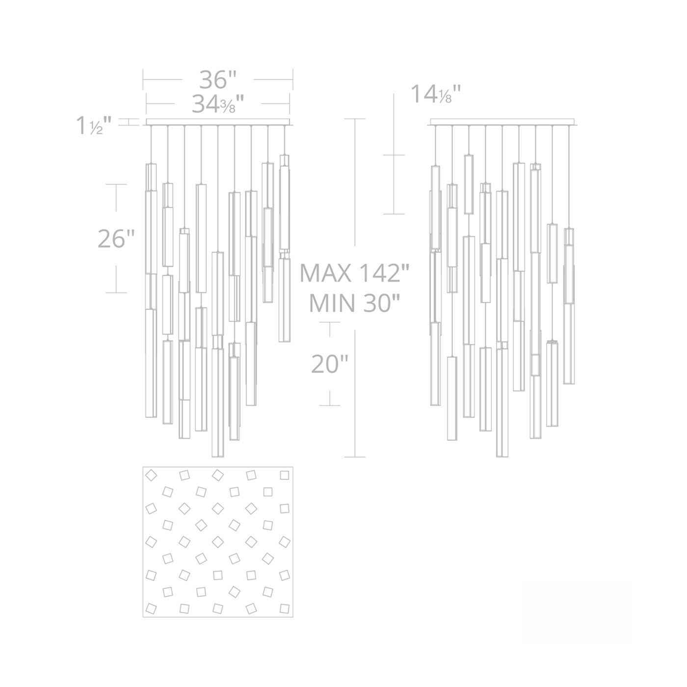 - Fixture Dimensions: 36"W