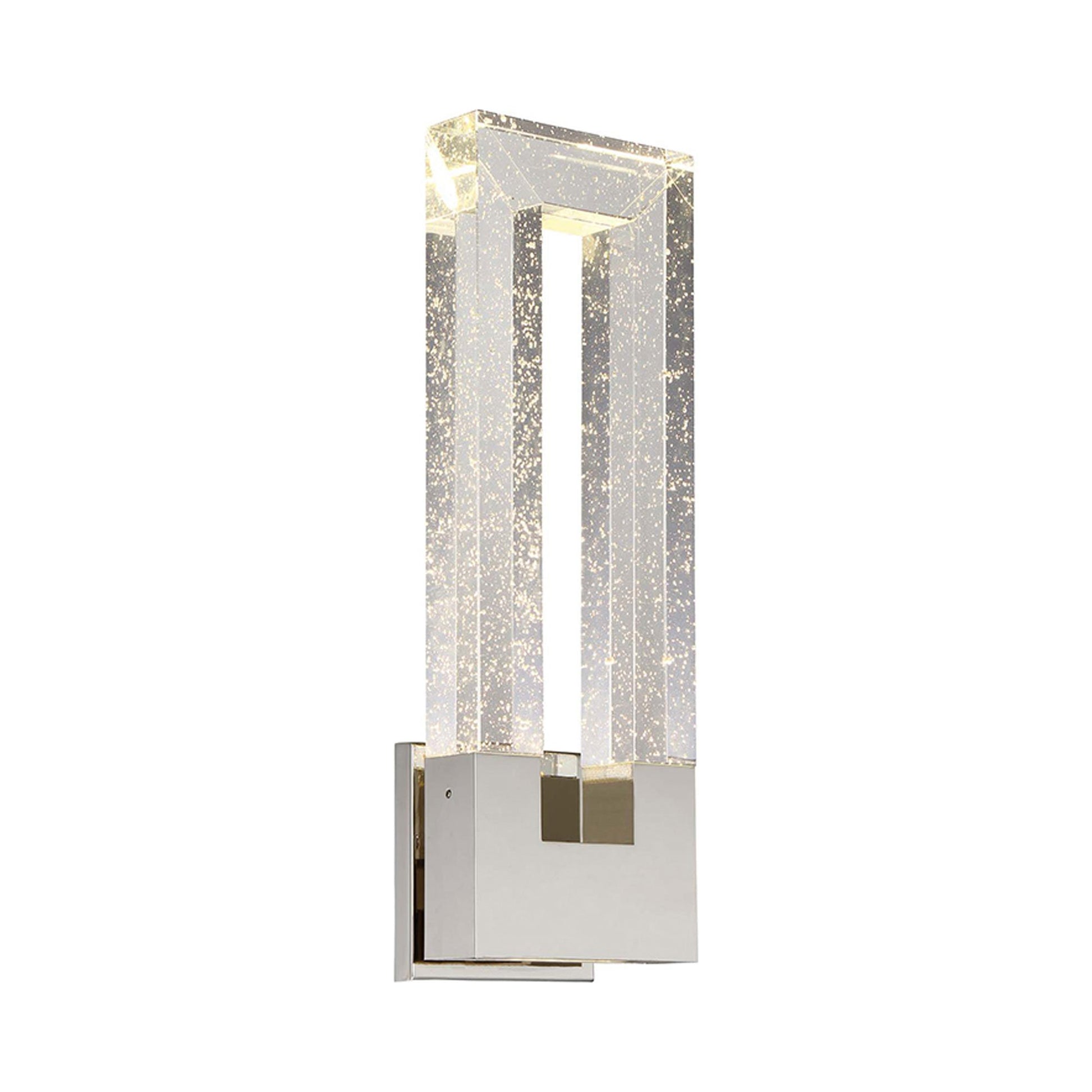 An upscale lobby, a theater, a luxury bath - they're all natural settings for Chill, a radiant sconce anywhere you mount it. The design is crafted from solid crystal, cut and perfectly mitered at the corners. The seeded bubbles within shimmer with powerful LED light for a stunning visual effect enhanced by the polished nickel finish of the frame.