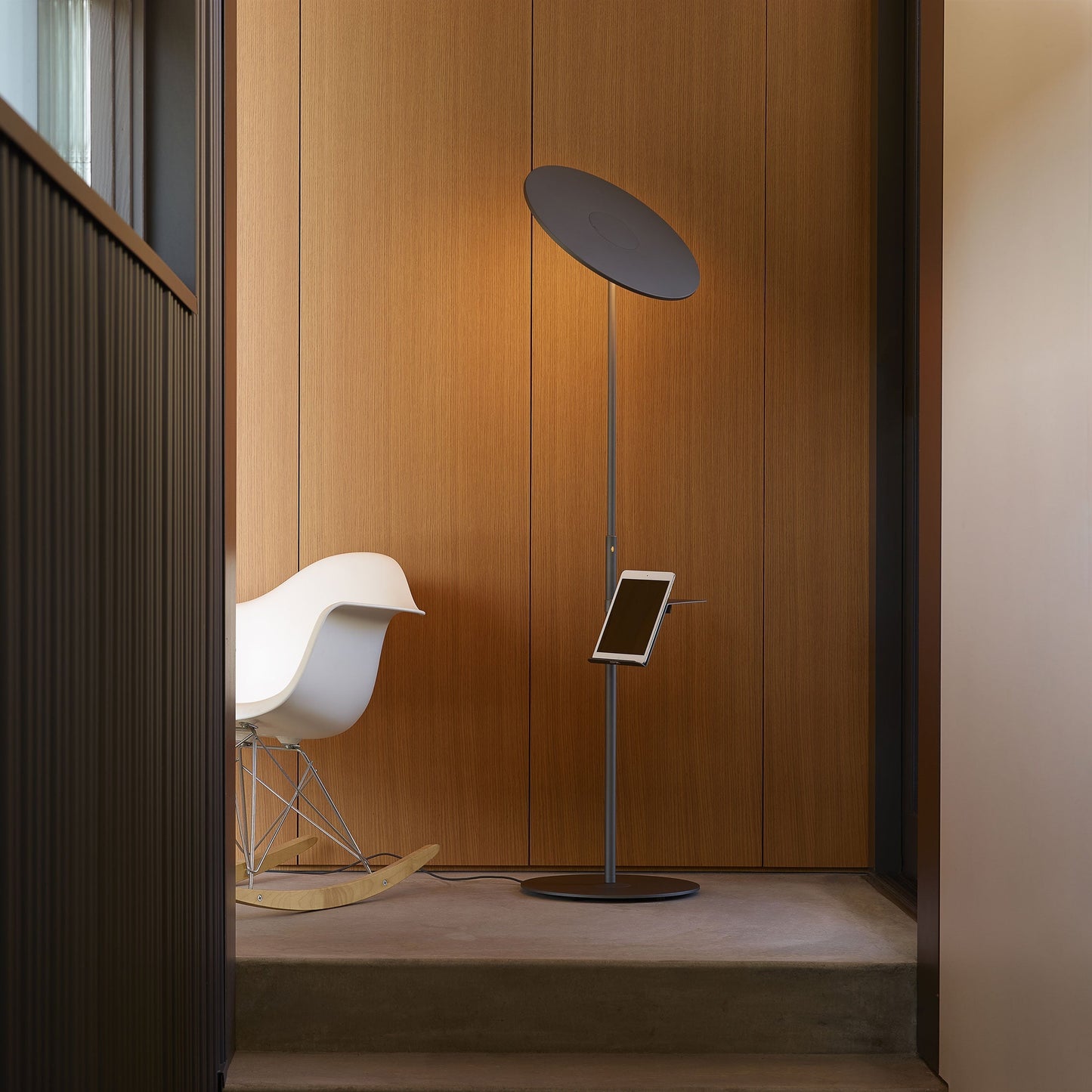 Go for something distinctive and different in outfitting a casual space with ambient lighting. The Circa LED Floor Lamp from Pablo features a whimsical satellite-inspired design and plenty of flexibility, starting with a disc shade that tilts to create custom lighting angles. Build an entire theme around this tasteful floor lamp and its geometric aesthetic as it integrates your modern living with tech upgrades including USB access.
