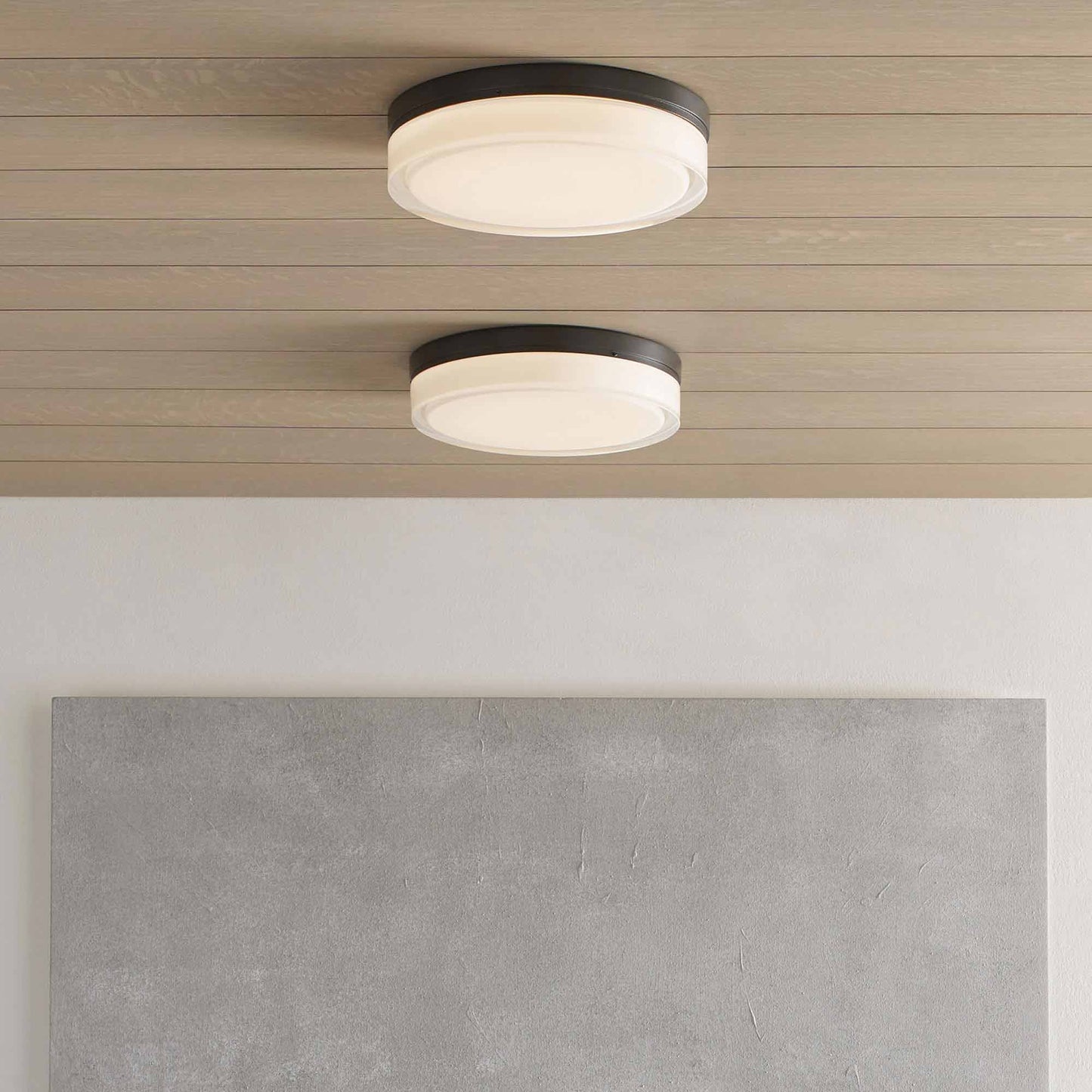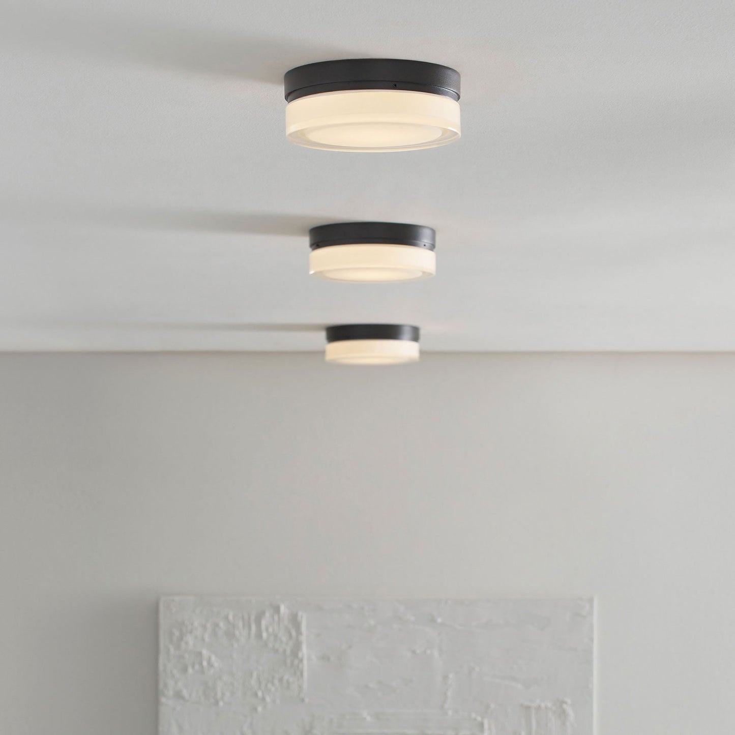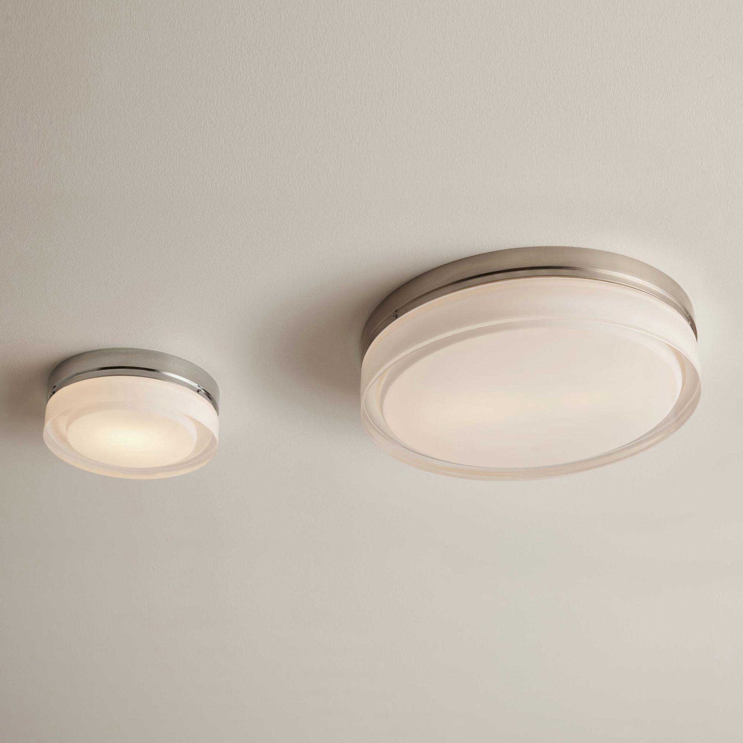 The Cirque LED Flush Mount Ceiling Light by Sean Lavin for Visual Comfort Modern features a simple and clean design with its beautiful round pressed glass shade is and hand polished exterior. A metal base made of die-cast metal frames the glass giving this feature a very handsome look. Choose from four on-trend hardware finishes to create a customized fixture perfect for your unique space. Scaling at two distinct sizes the Cirque is ideal for hallway lighting, bathroom lighting and outdoor lighting applications. Your choice of LED lamping ships with Cirque saving you time and money. Lamping options are compatible with most dimmers.