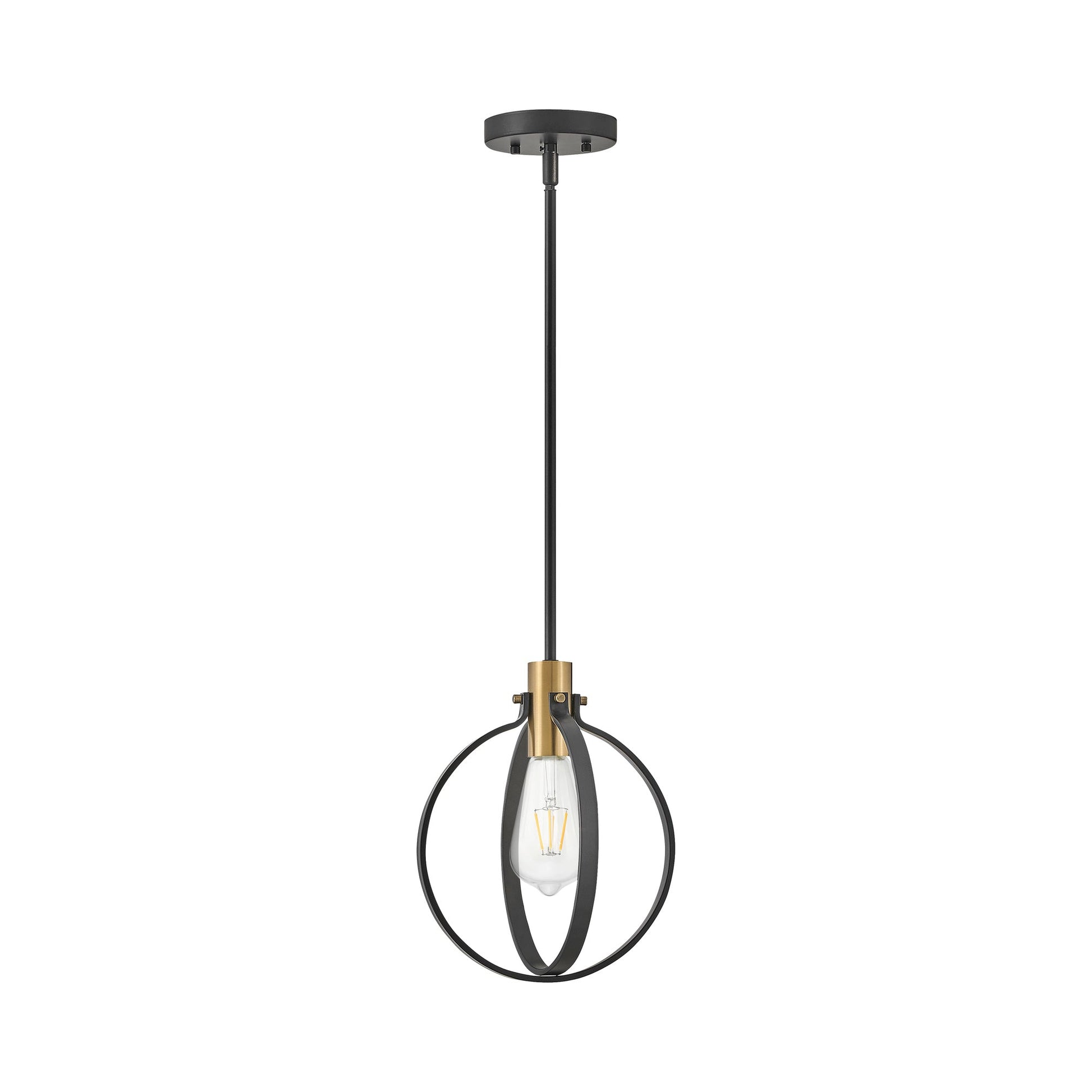 Airy and just a little bit whimsical, the Cirque Pendant Light from LARK pairs an open orb cage with lacquered brass accents and a black finish. Ideal for compact spaces or hung in series, the pendant is a sophisticated design accent.