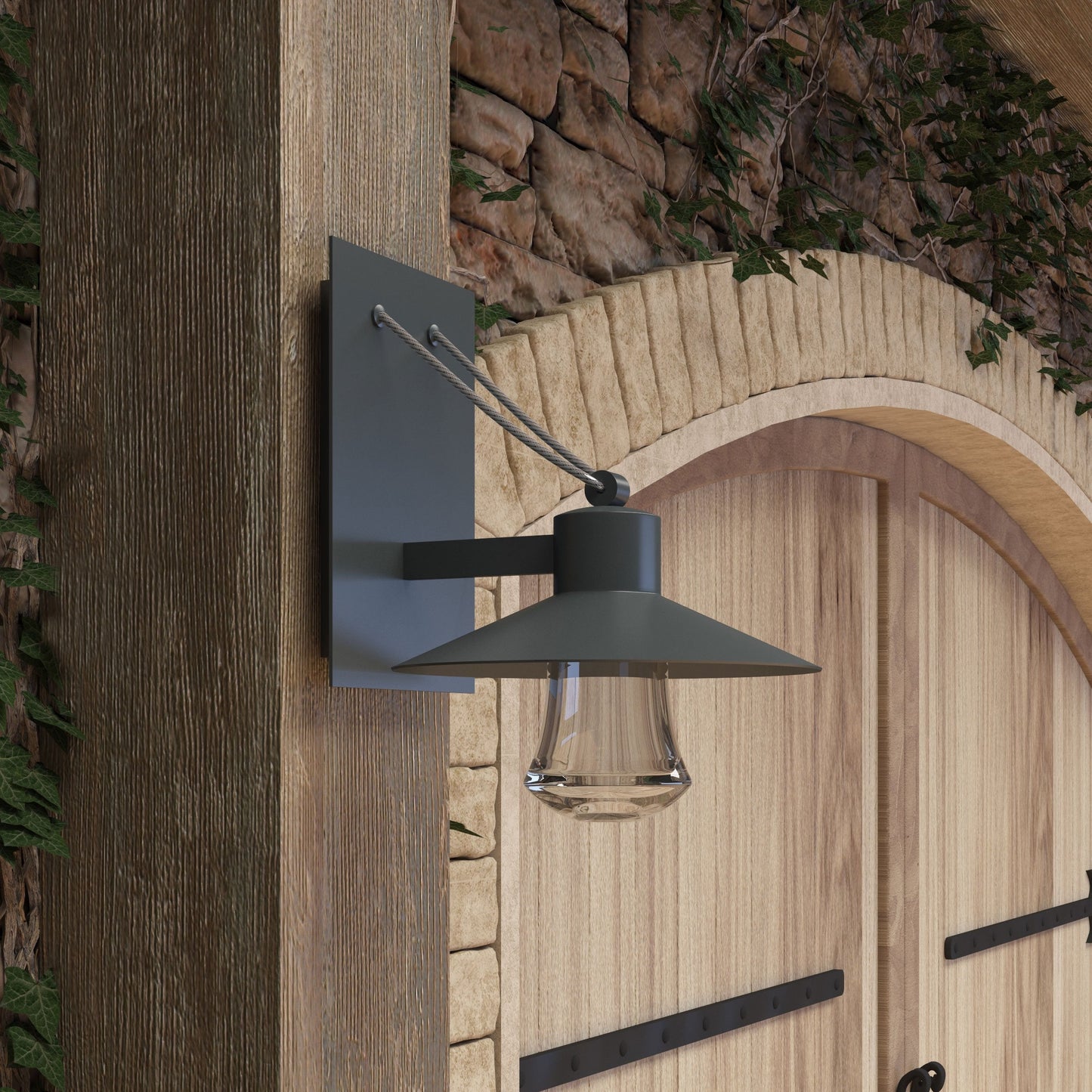 Classic village industrial vibes embellish the Civic Outdoor LED Wall Light from Maxim Lighting, offering a cool hood shade with a shapely glass shade and charming cable wall plate suspension and energy-efficient lighting.