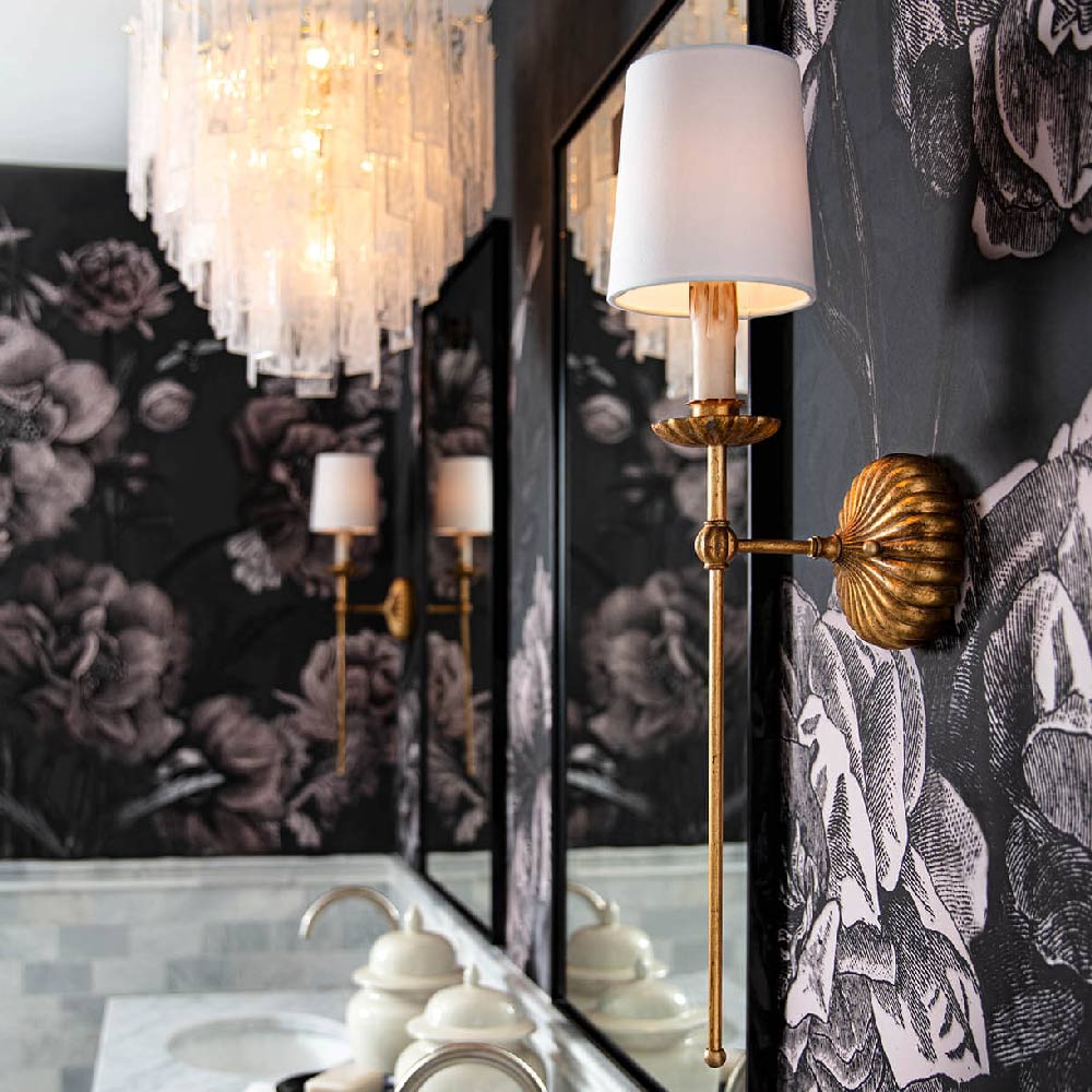 Reach for perfection and a rich vintage flavor in a light fixture designed with gallery elegance. The Clove Wall Light from Regina Andrew finds its artistry in a sculpted medallion mount, with curved arms and candle cups delivering dramatic and romantic character. Tapered shades provide proportionality to achieve overall impact.