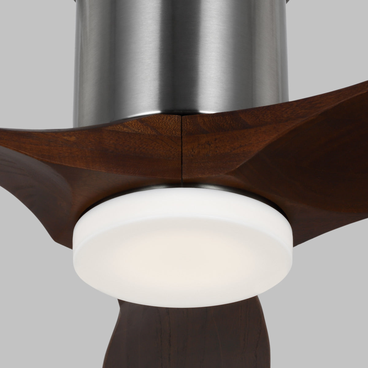 Adopt a modernized design in ceiling fans with the Collins Smart Hugger Outdoor LED Ceiling Fan from Visual Comfort Fan. Outdoor settings benefit from air circulation as much as indoor spaces, and this fan brings a sleek silhouette with three sculpted blades adding an aeronautical touch. A light kit delivers energy-efficient illumination to create a warm glow.