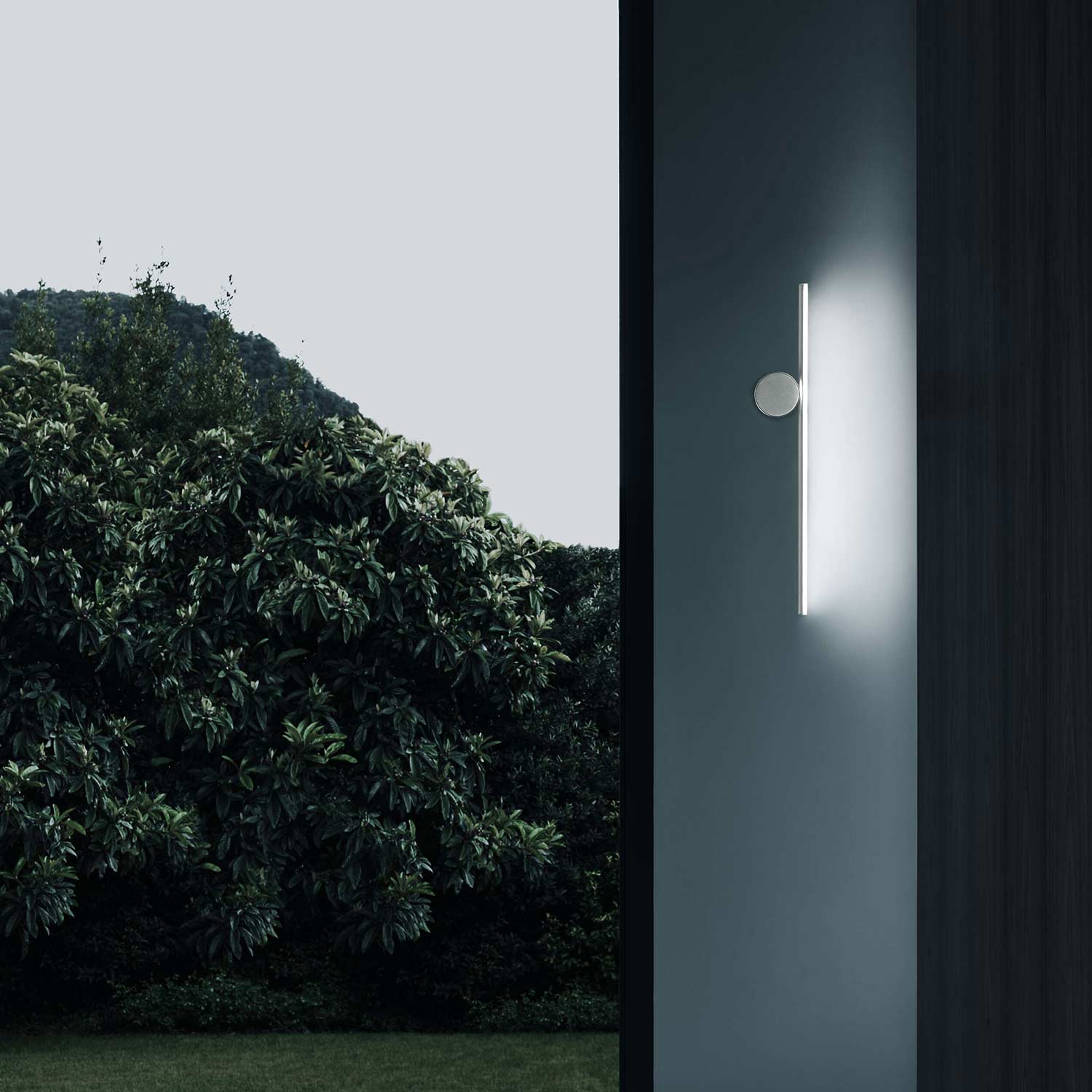Delight in the ultra-modern minimalism of the Coordinates LED Wall Light from FLOS. Spectacular in its simplicity, the fixture delivers a wash of lovely illumination with a slim, bar-style diffuser attached to a perfectly round wall plate to create its gorgeous silhouette. Perfect for a sophisticated entry, living room, or home office.