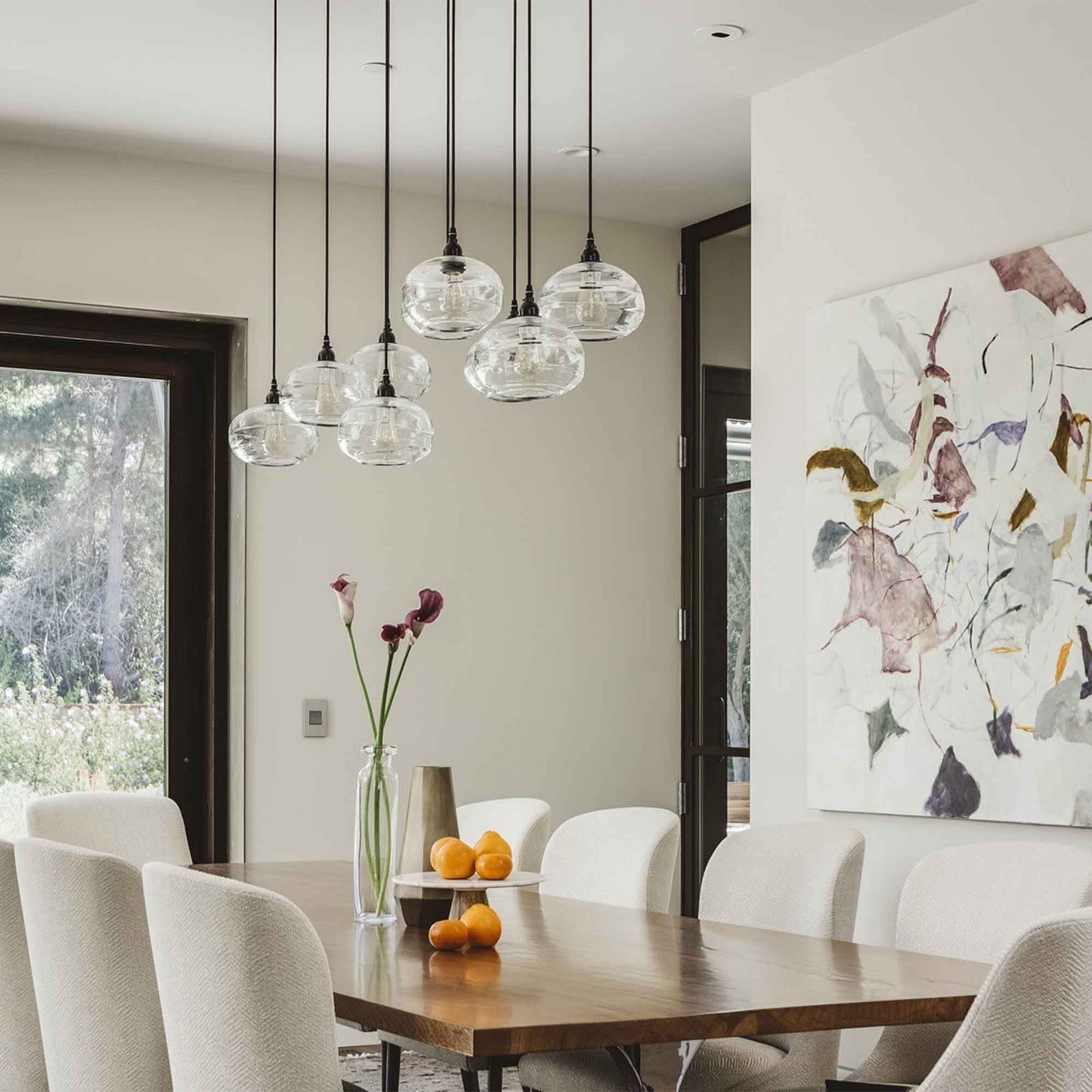 Create an artisanal display of glowing light, choosing the Coppa Square Multi Light Pendant Light from Hammerton Studio for its fine art aesthetic. Finish combinations customize a bedroom or open living space with texturizing effects and a mesmerizing graduated arrangement of oval hand-blown glass shades.