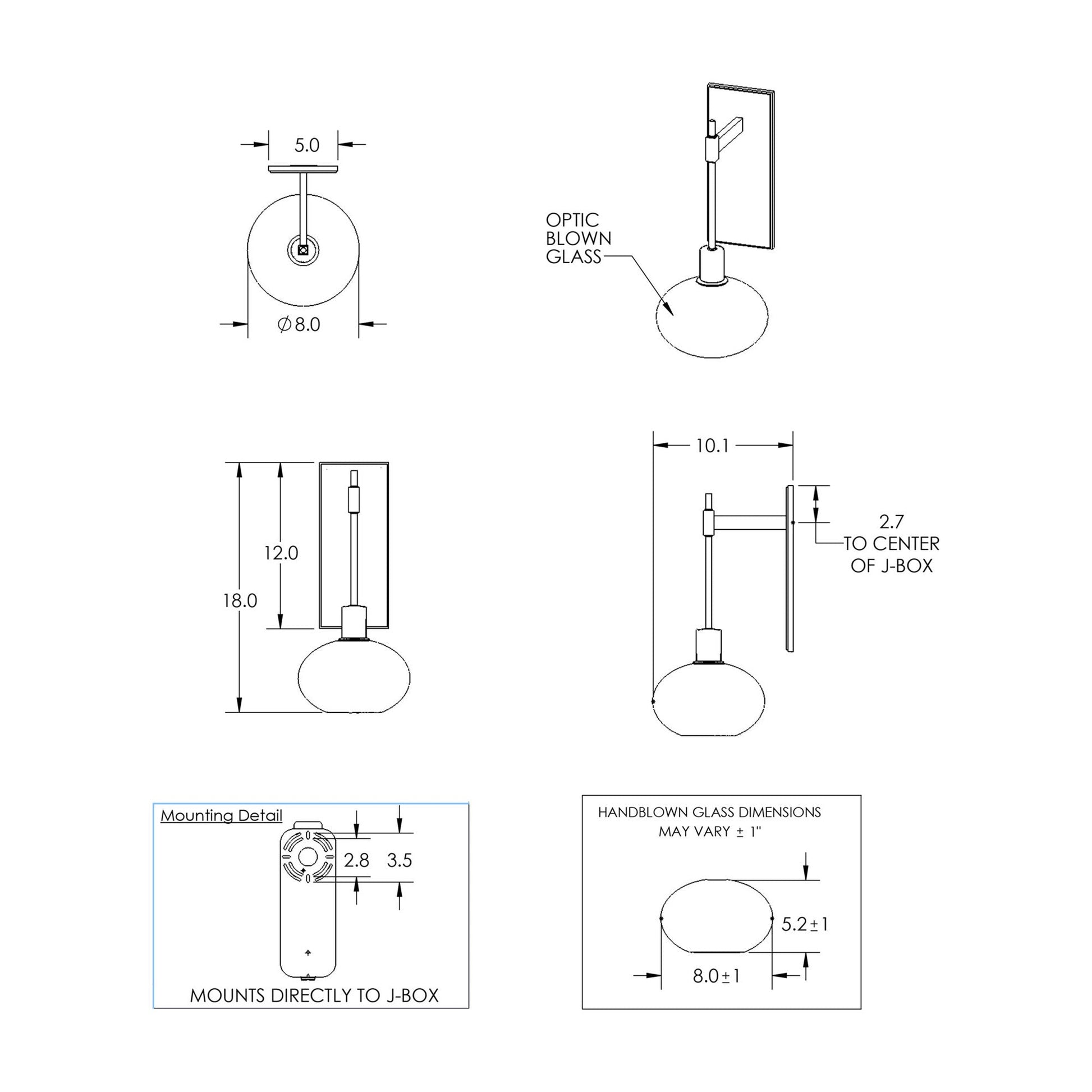 - Dimensions: 8"W X 18"H; 10.1" Extension