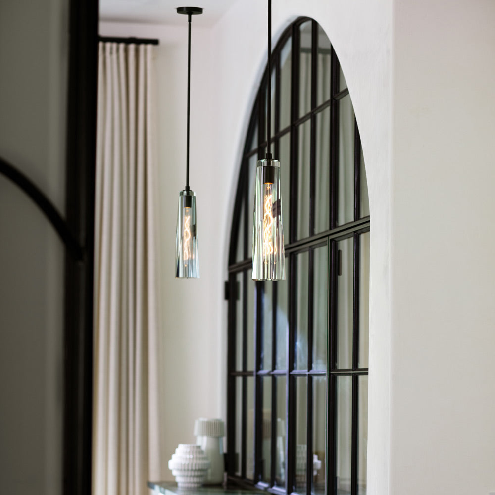 Thick, lush crystal creates a glittering effect for the elongated shade punctuating the Cosette Pendant Light from Fredrick Ramond.