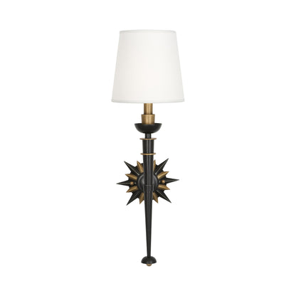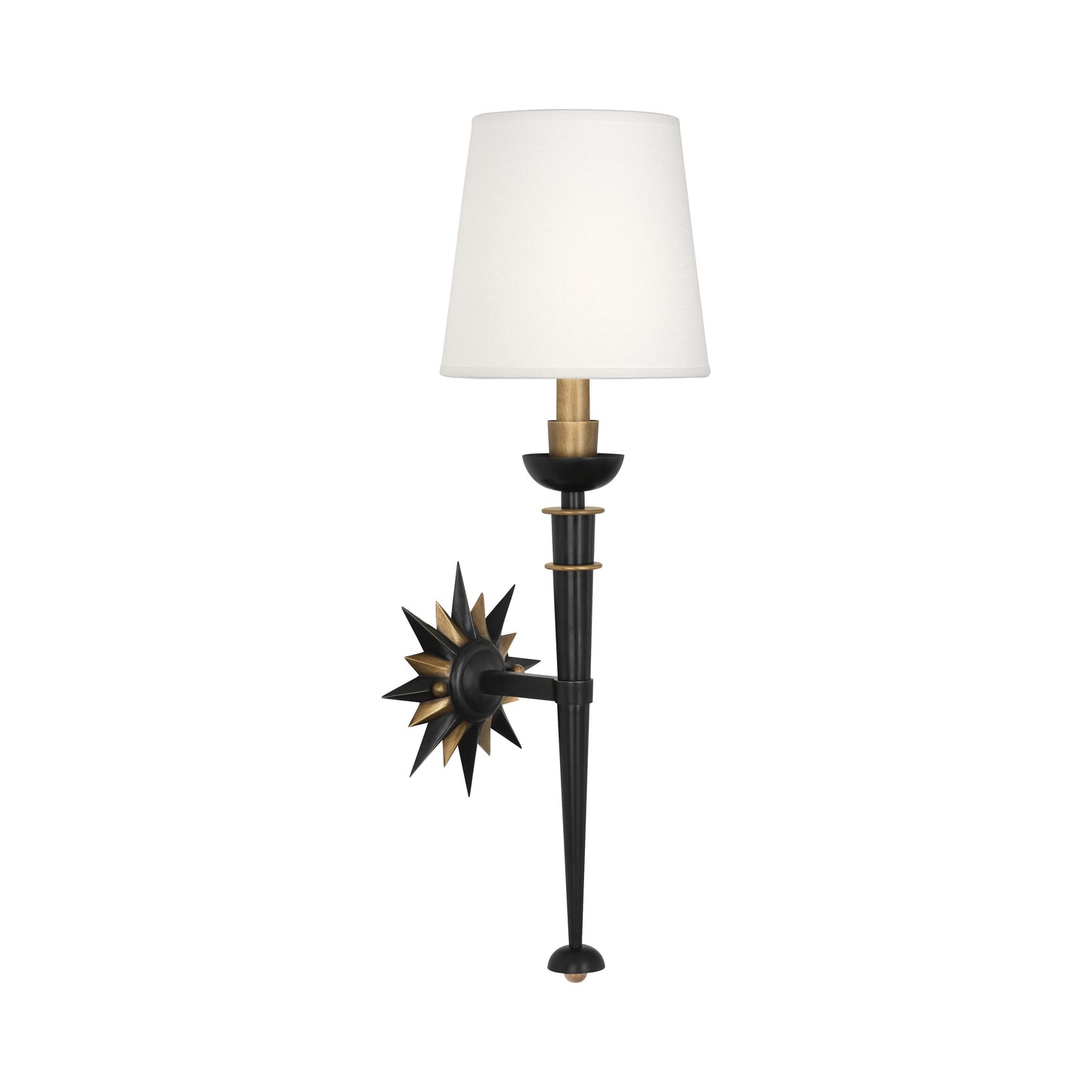 A confluence of dramatic design elements creates stunning elegance in the Cosmos Wall Light from Robert Abbey, delivering an Art Deco inspired motif with a charming star-like wall mount.