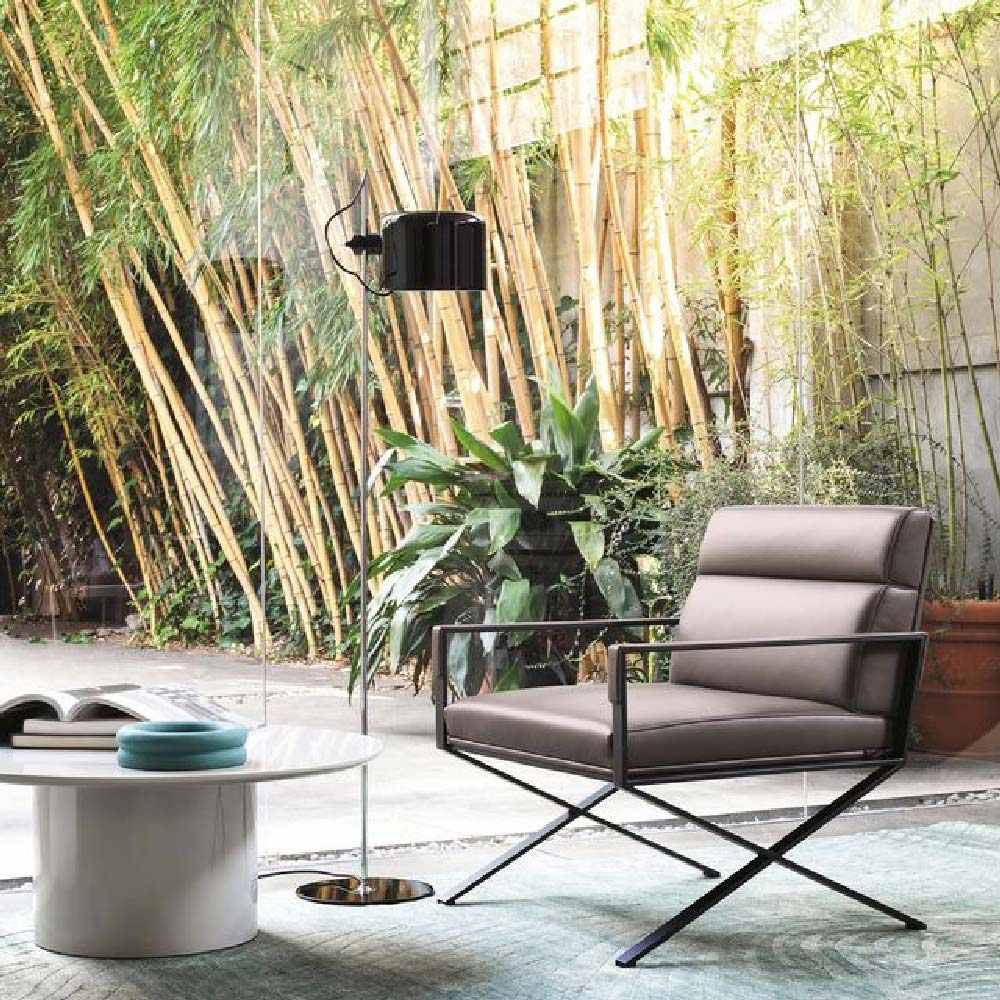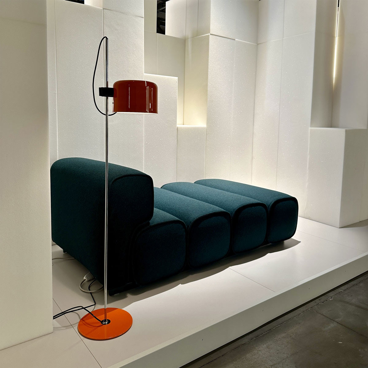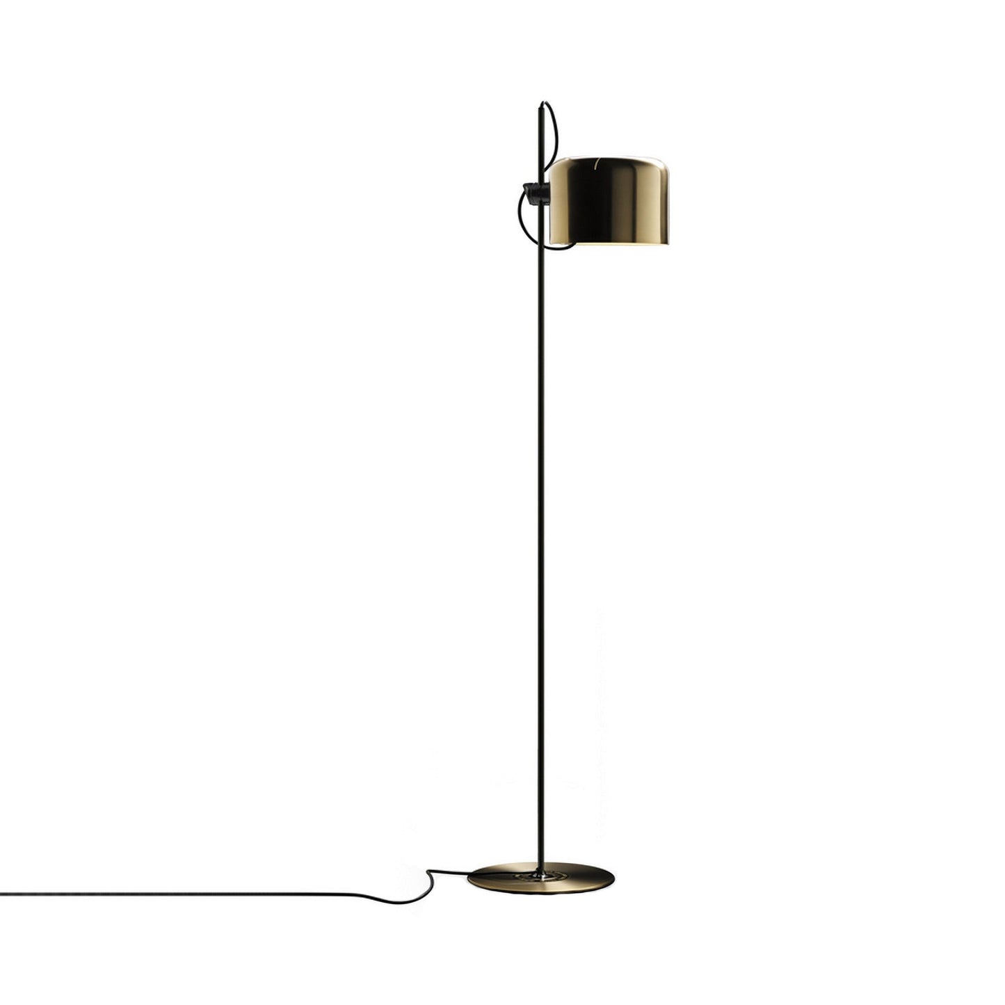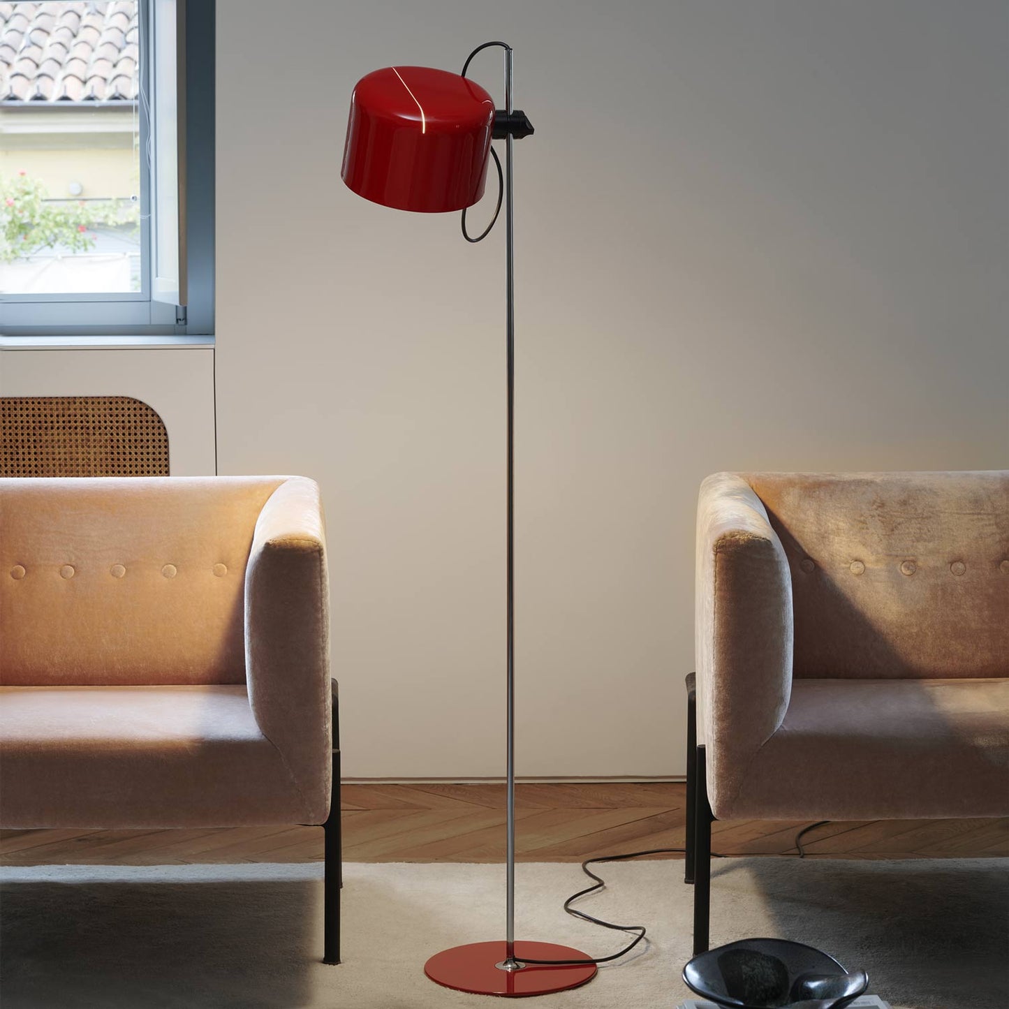 The Coupé Floor lamp is made of metal lacquered base and structure, chromium-plated stem and adjustable re_x001F_ector in lacquered aluminum. The simple, ingenious mechanism that connects the stem to the head makes it possible to direct the beam in several directions, by moving the dome up, down and sideways. In 1968, Coupé won the ”International Design Award” of the American Institute of Interior Designers in Chicago. It is part of the permanent collection at both the MoMA in New York and the ”Neue Sammlung” Museum in Munich.