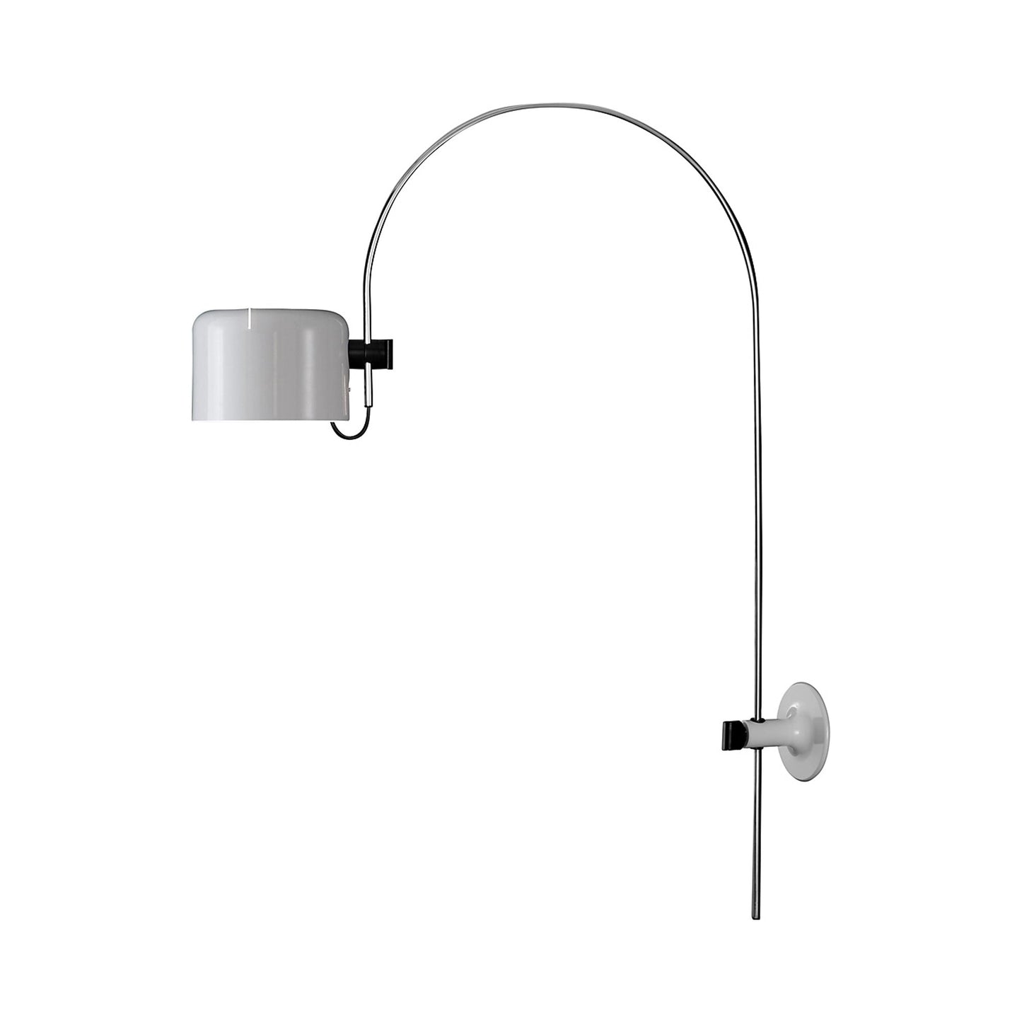 A mod sensibility suffuses the Coupe Wall Light from Oluce with character and engaging style to light a sitting area or home office workspace. Graceful curves define the silhouette, offering chic flair in any room.