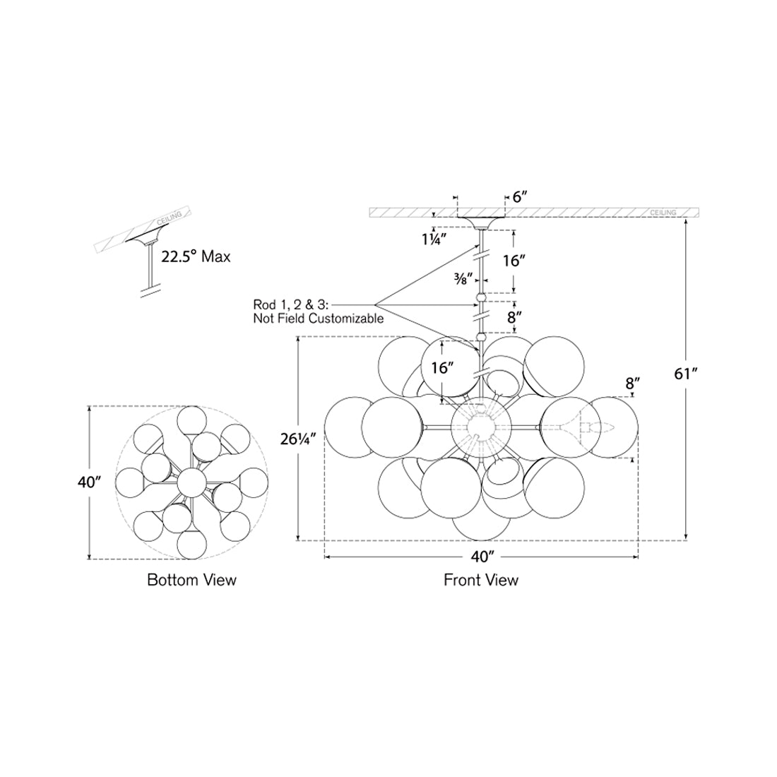 - 40-Inch: 17 X 6.5W 120V E12(candelabra base) B11 LED lamps (not included)
