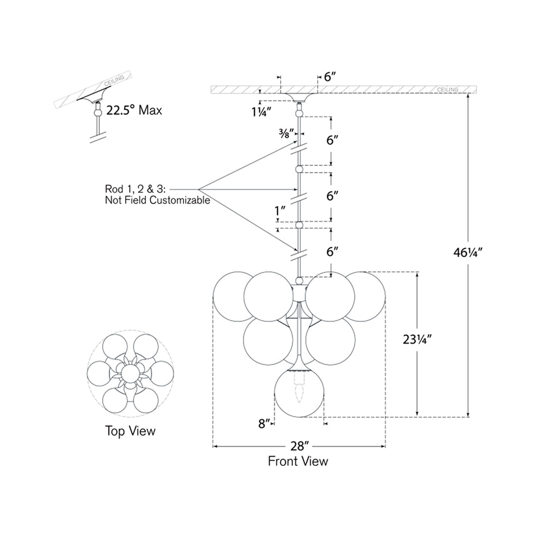 - 28-Inch: 10 X 40W 120V E12(candelabra base) B11 incandescent lamps (not included)