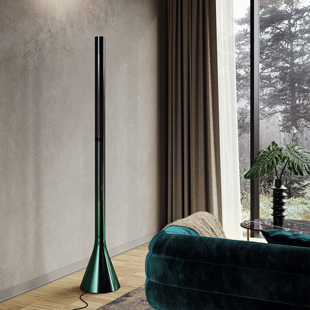 Turn convention on its head -- literally -- with the intriguing flipped silhouette of the Croma LED Floor Lamp from LODES. A glow of bright illumination emerges from the slim top of the lamp, creating an inviting atmosphere with its dim-to-warm functionality. A perfect blend of artistry and elegant illumination that enlivens any living space.
