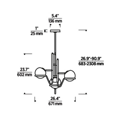 - 3-Light: 26.4"D X 23.7"H; 90.9" max height