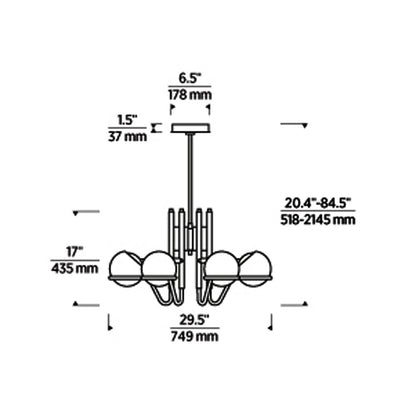 - 6-Light: 29.5"D X 17"H; 84.5" max height