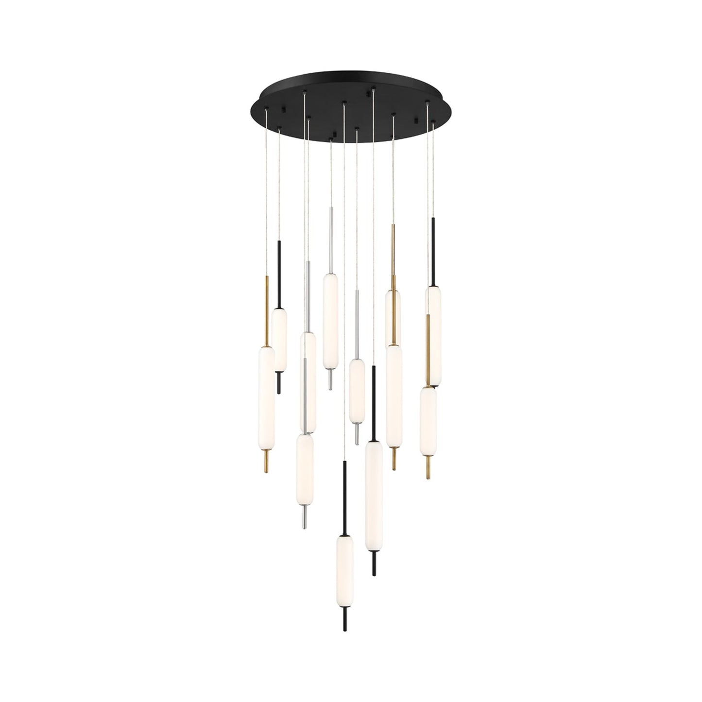 Easy elegance takes on a bit of industrial style as the Cumberland Round LED Multi Light Pendant Light from Eurofase infuses soft, energy-efficient lighting around a living room or entryway. Choose this decadent fixture featuring opal LED capsules dangling from metal rods at graduated lengths, creating a motif borrowed from iconic wind chimes.