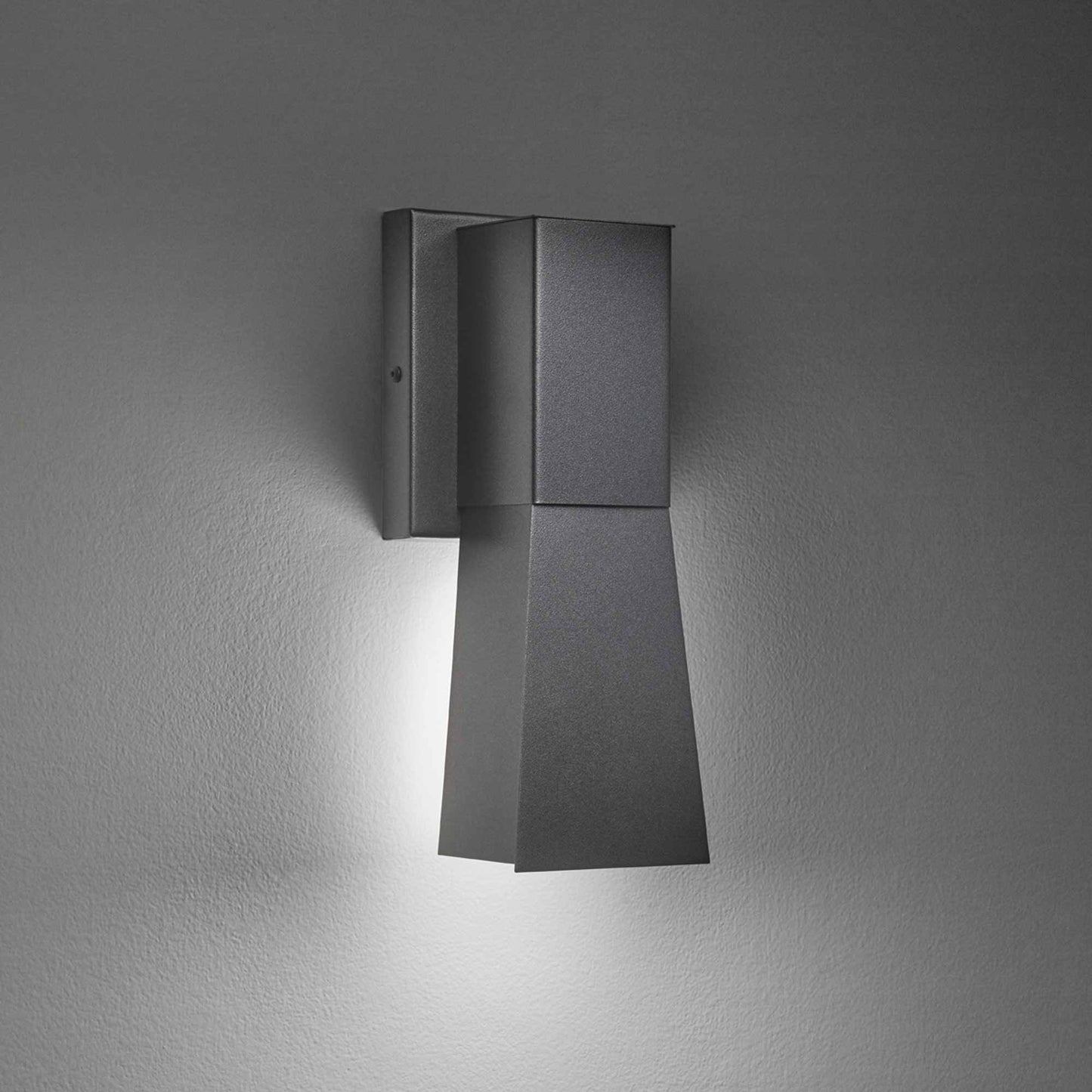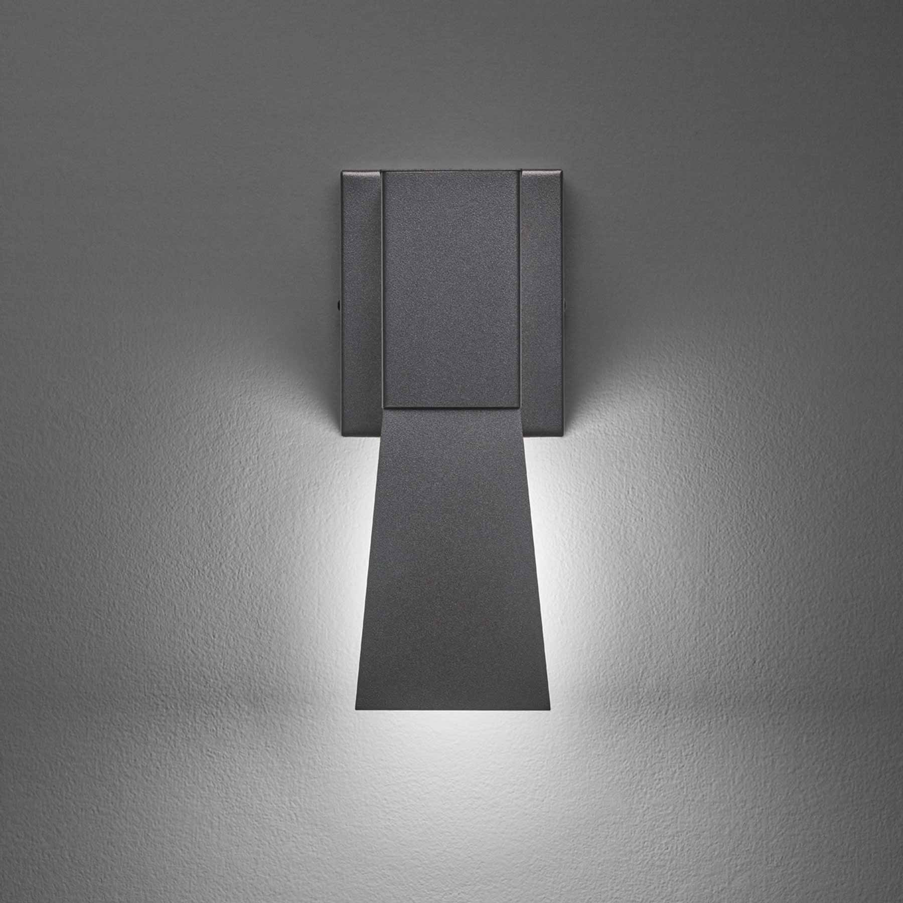 Sharp angles offer a dynamic hourglass-inspired silhouette to the Cylo Down LED Wall Light from UltraLights, creating convenient infusion of accent lighting and a rugged industrial motif. Fashioned of stainless steel, it features a trapezoid attachment to send light downward, creating mood lighting in a main living area, hallway, or bedroom.