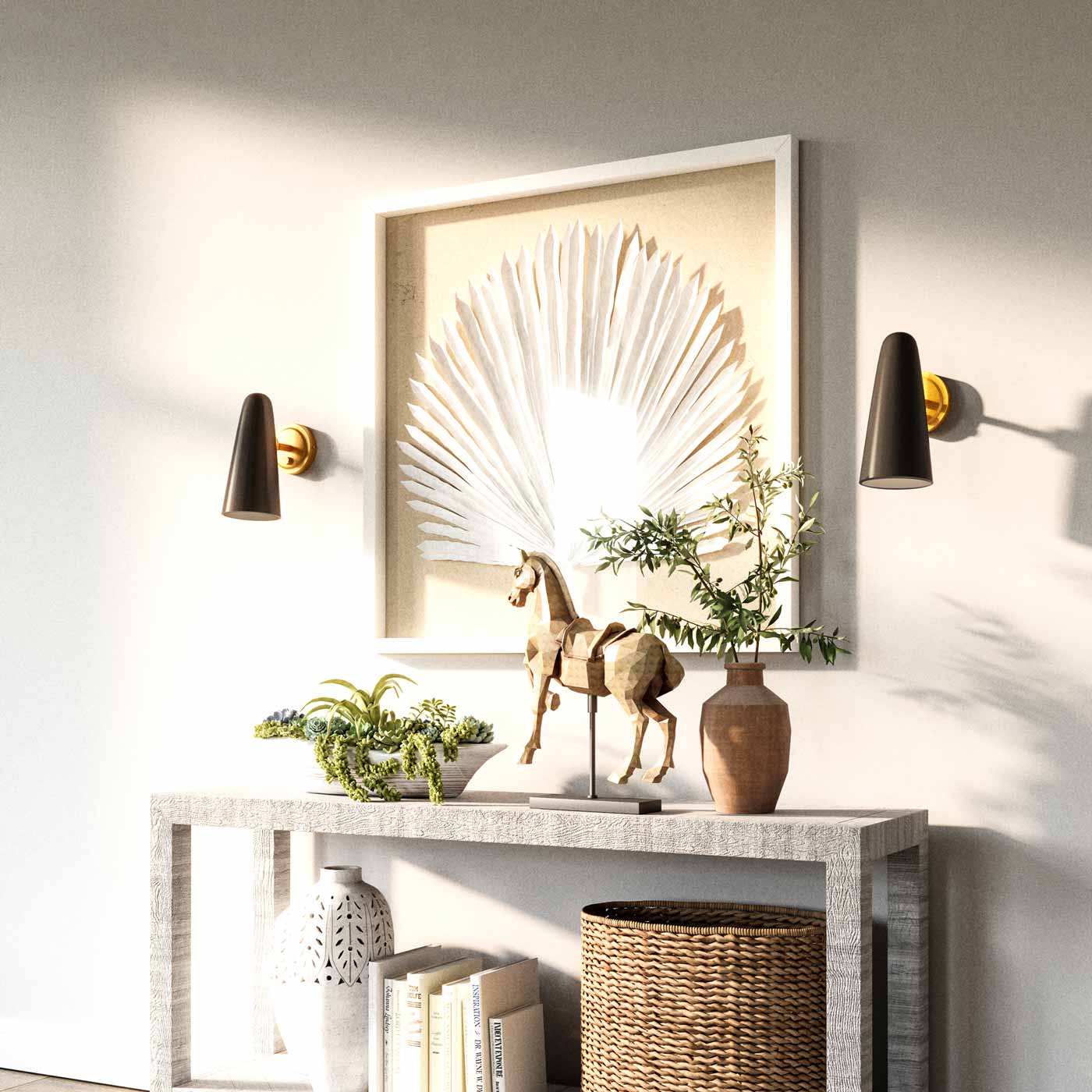 A slight Hollywood vibe takes an interesting turn in the industrial-inspired design of the Daniel Wall Light from Alora Mood. Bring accent lighting to a themed custom space using the mixed-metal construction of a classic, adding adjustable lighting as a bonus.