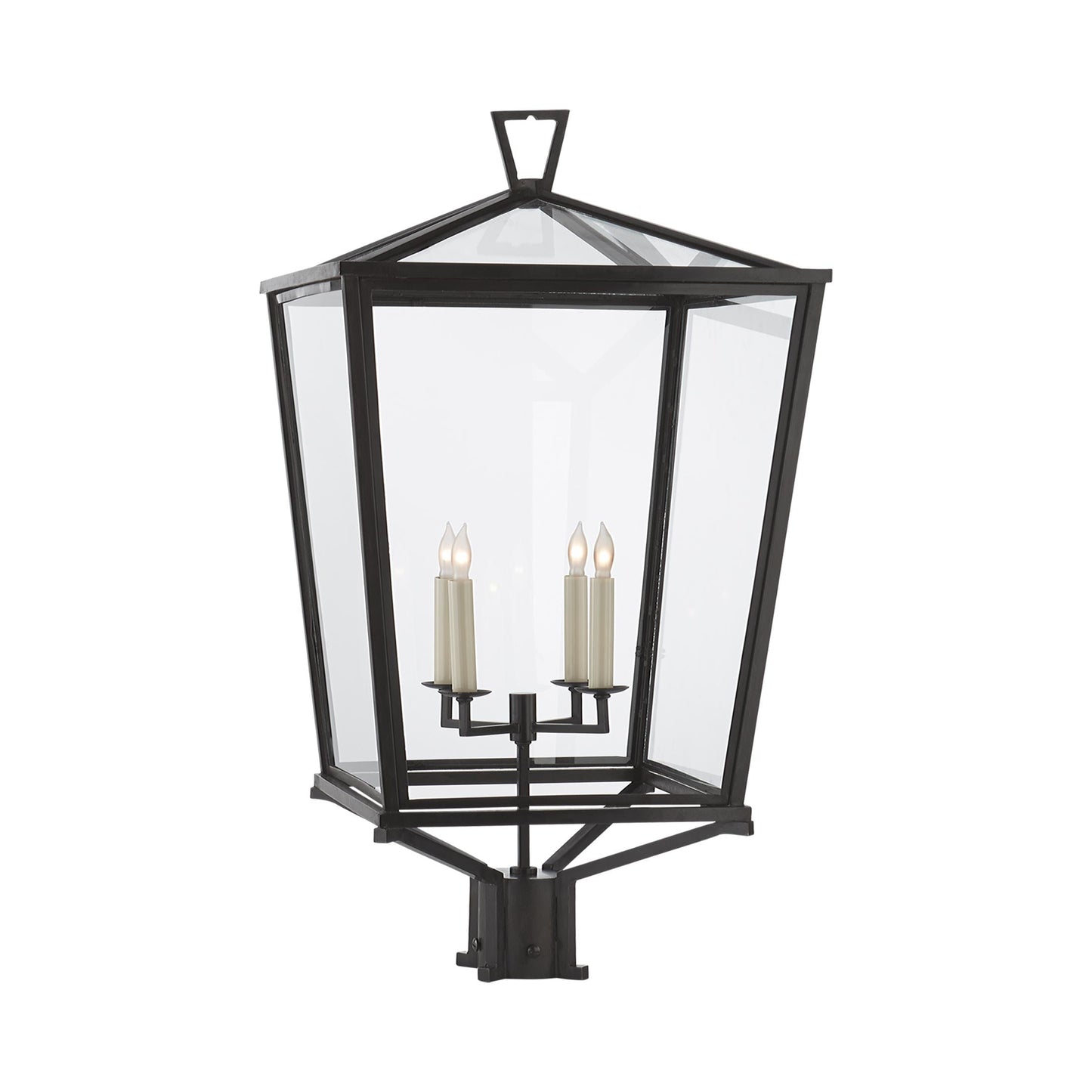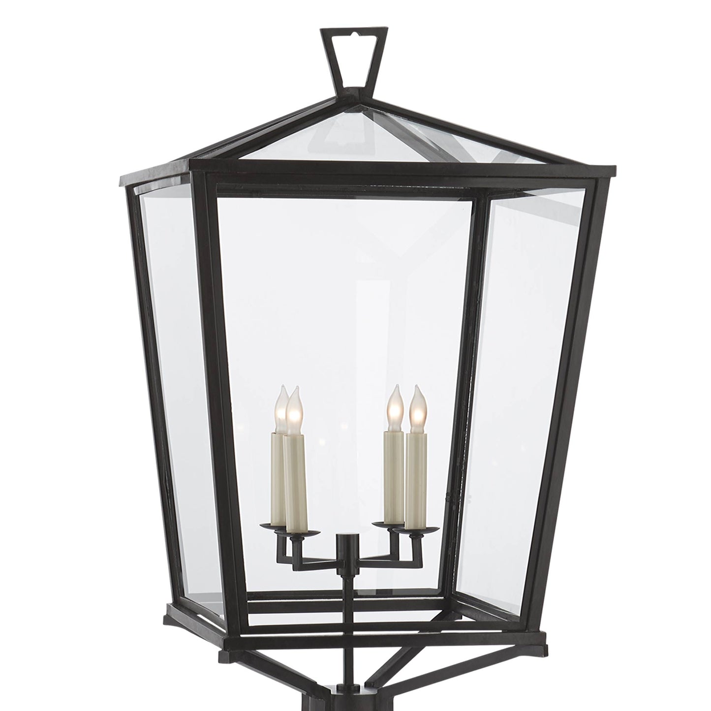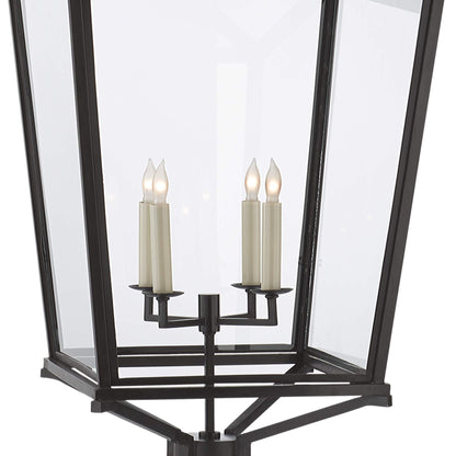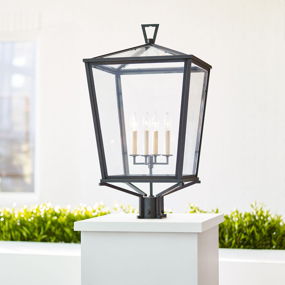 Embellish the exquisite natural beauty of a garden space or walkway with the Darlana Outdoor Post Light from Visual Comfort Signature. A lantern design offers iconic, legendary ambiance to a light fashioned of metal with clear glass panels. Petite candelabra bases soften and dramatize the storied traditional look of this outdoor fixture.