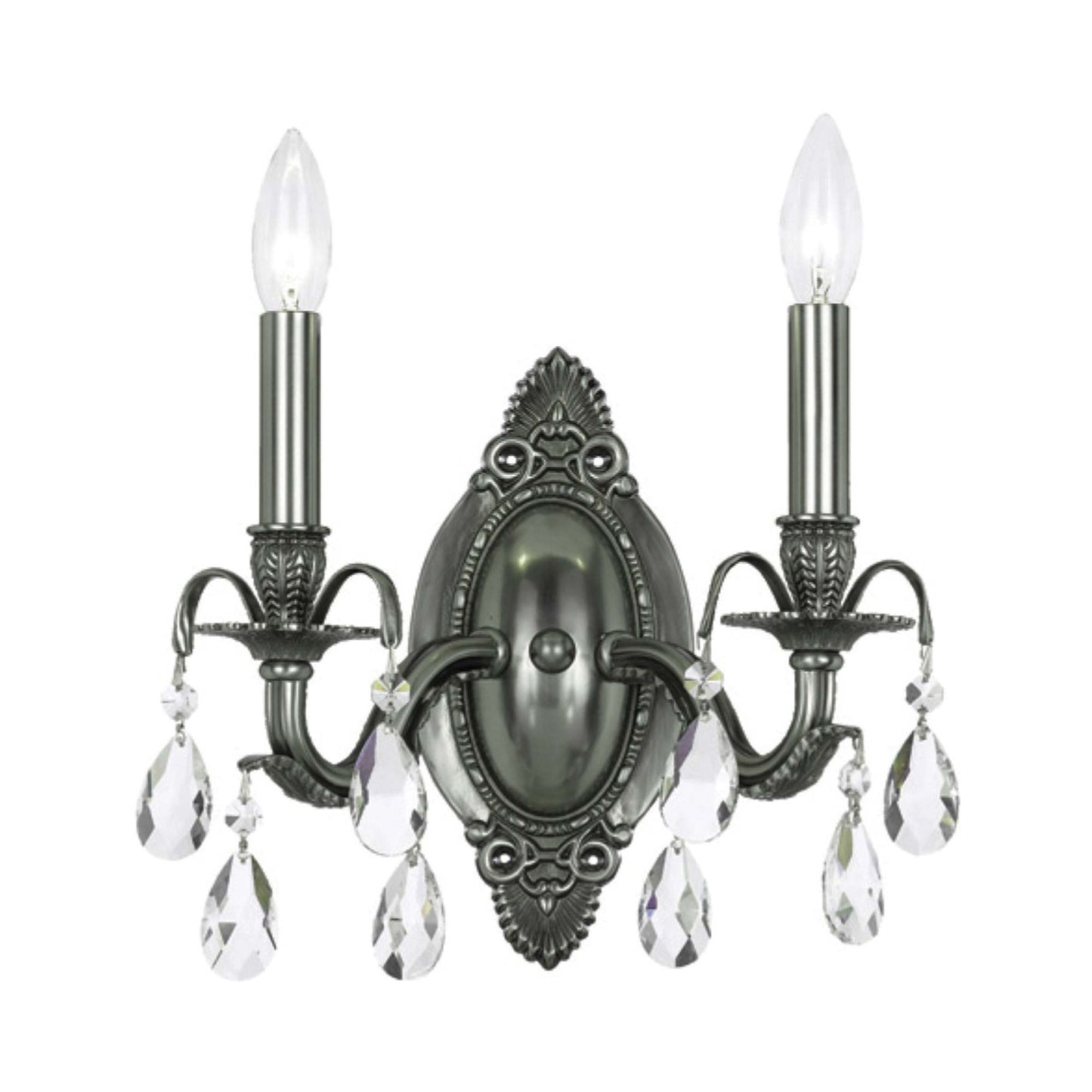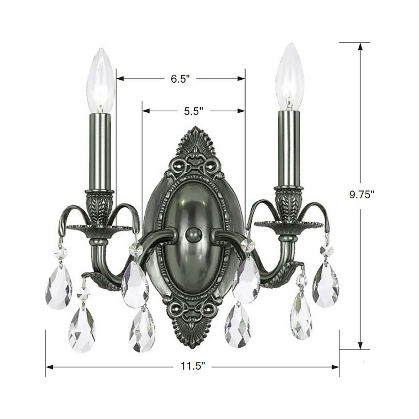 Symmetry and exquisite glam are equal design elements creating an exceptional look of elegance in the Dawson Wall Light from Crystorama. Lose yourself in the intricate sculpting and textural flavor of a traditional fixture made of classic metal, with dangling faceted crystals becoming an agent of sparkling light reflection. This gallery-inspired wall light transforms a living room, hallway, or bedroom, with the level of dramatic expression you desire.