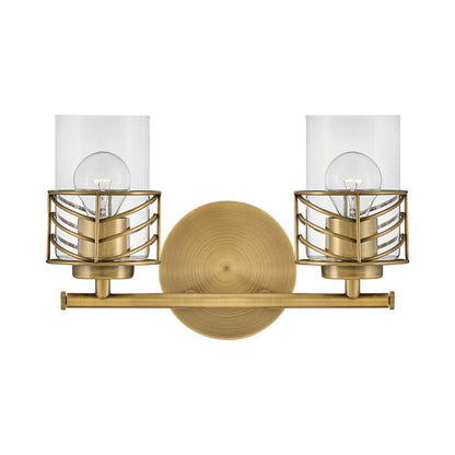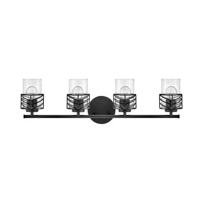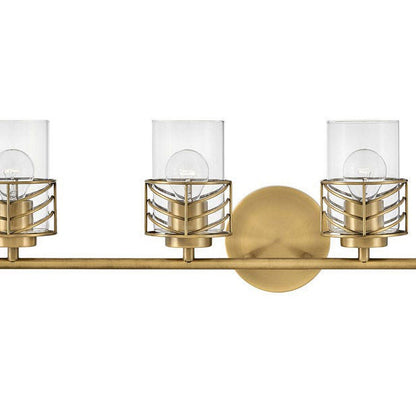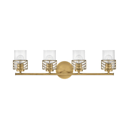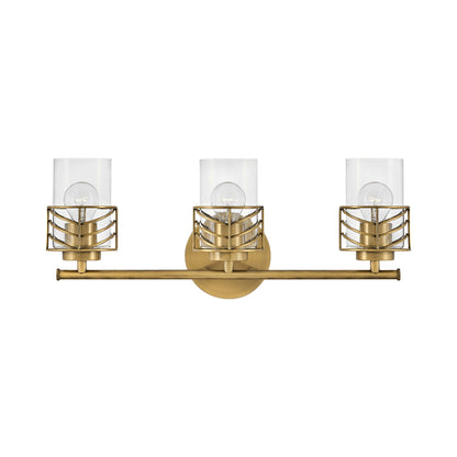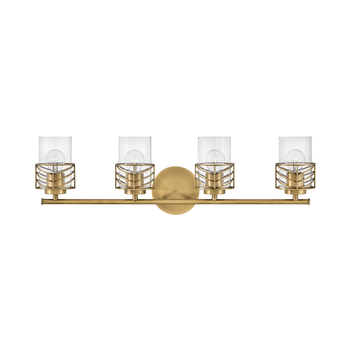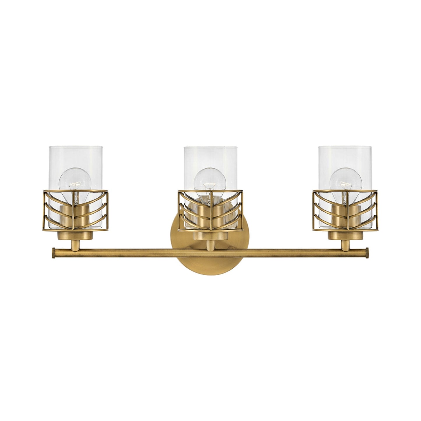 Metal chevron accents play up the vintage charm of the Della Bath Vanity Light from Hinkley as they cast intriguing shadows.