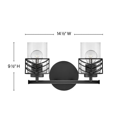 - 2-Light: 14.5"W X 9.5"H; 6.5" Extension